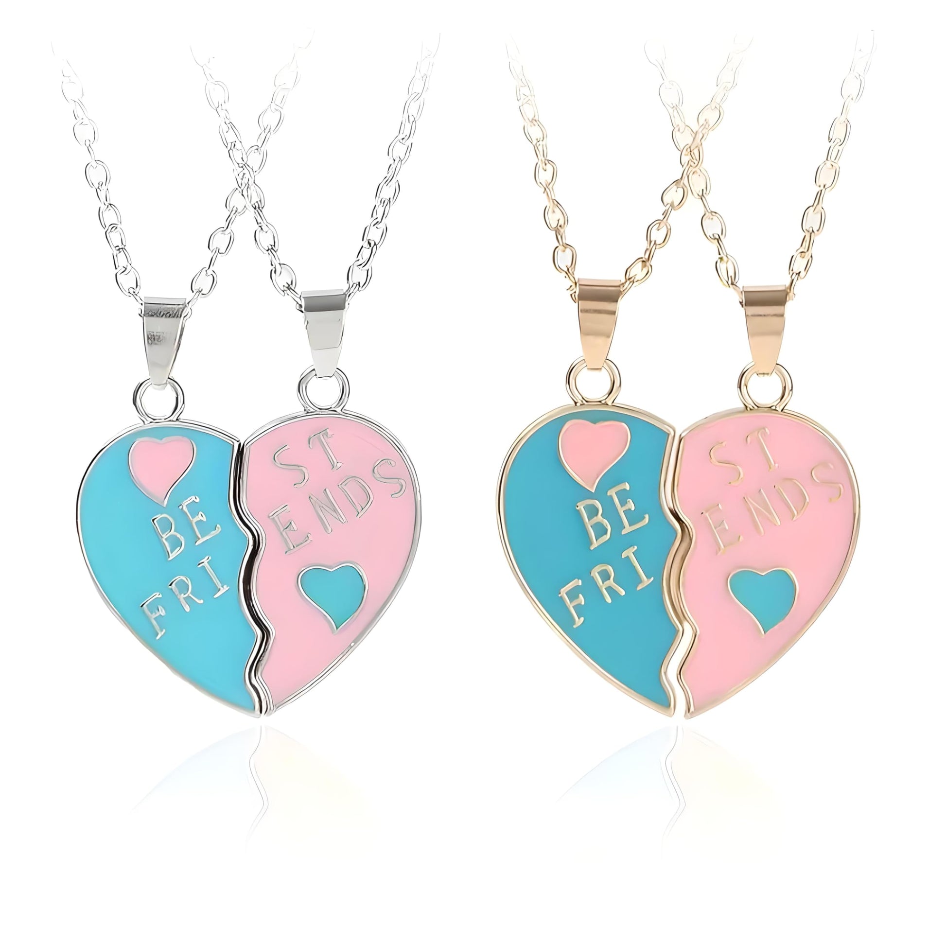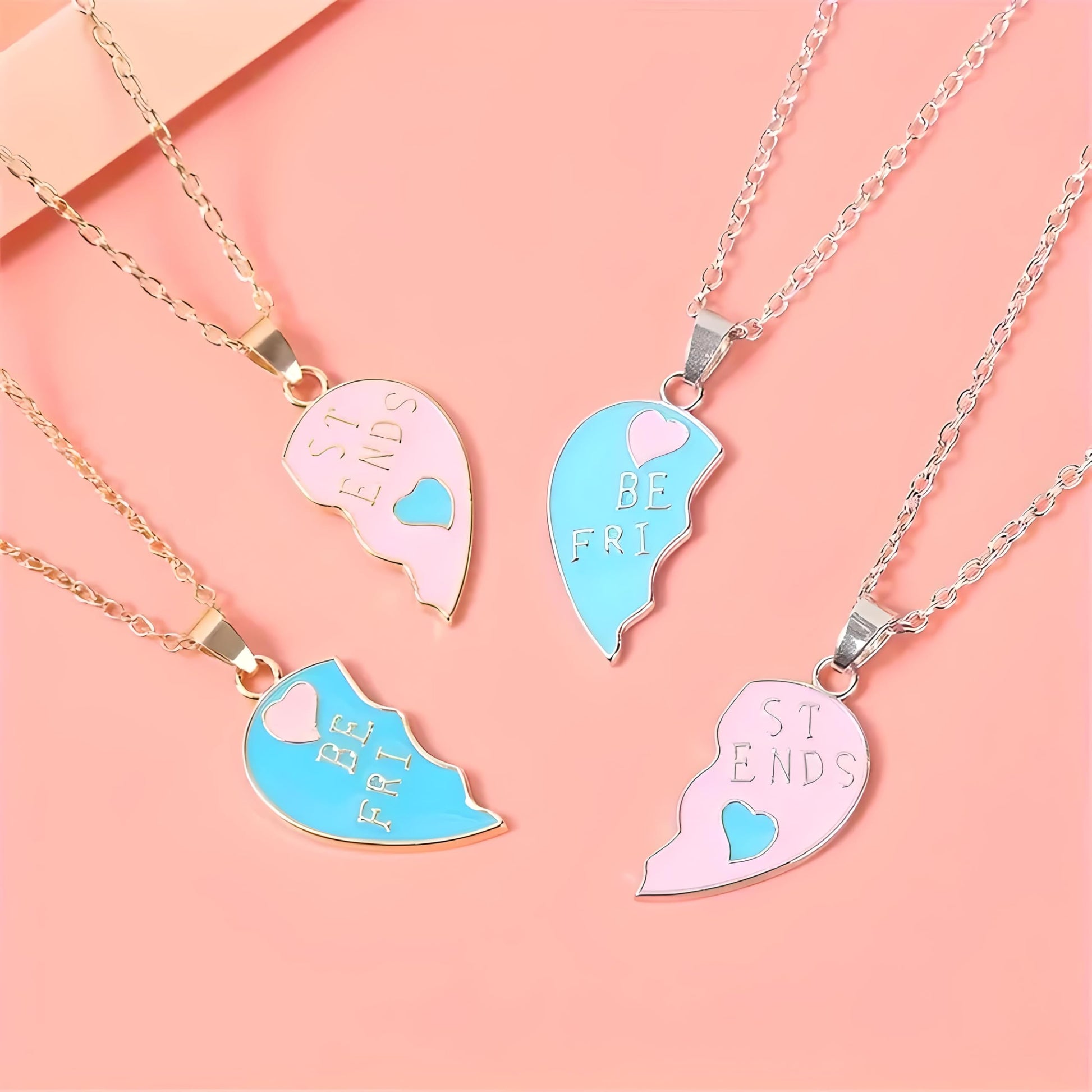 - FRIENDSHIP SET: Two-piece necklace set featuring a split heart pendant that combines to form one complete heart with 'BE FRI' and 'ST ENDS' text