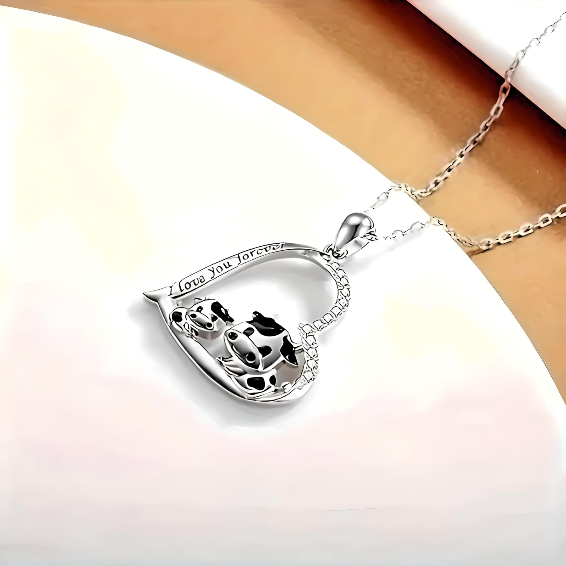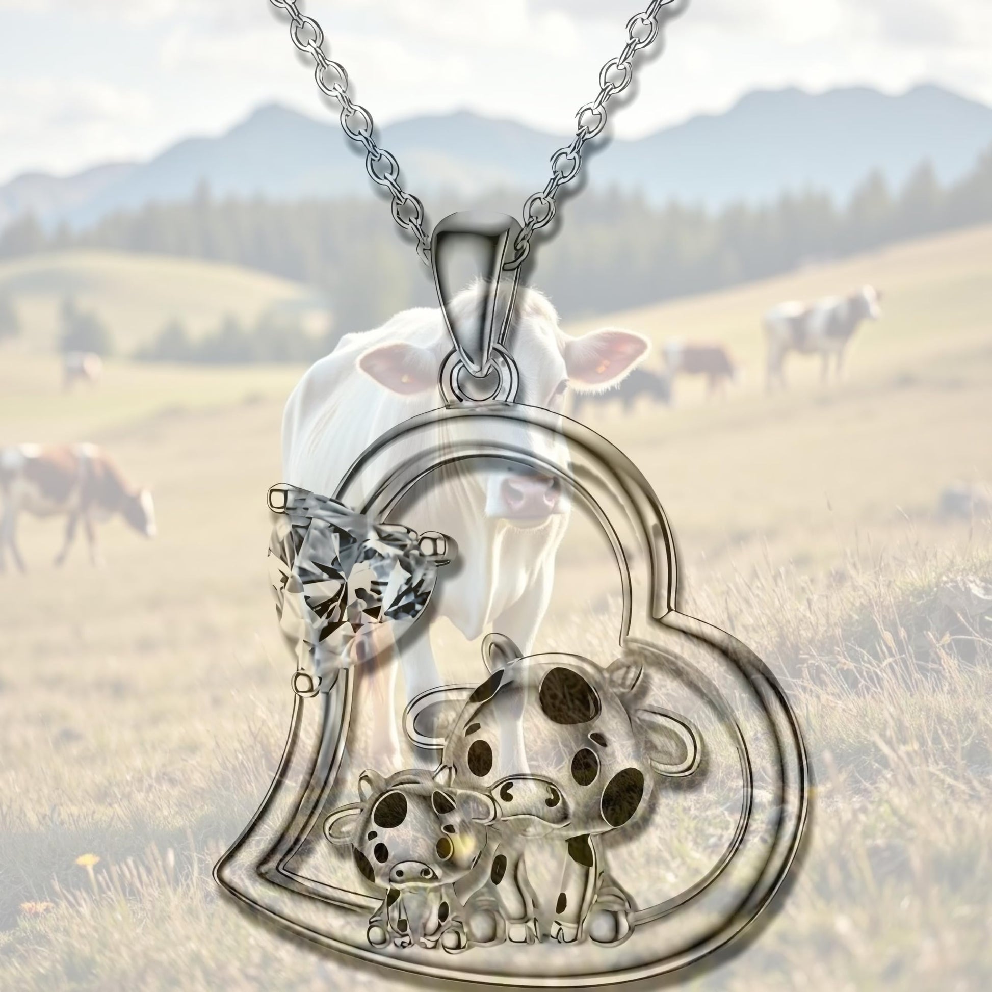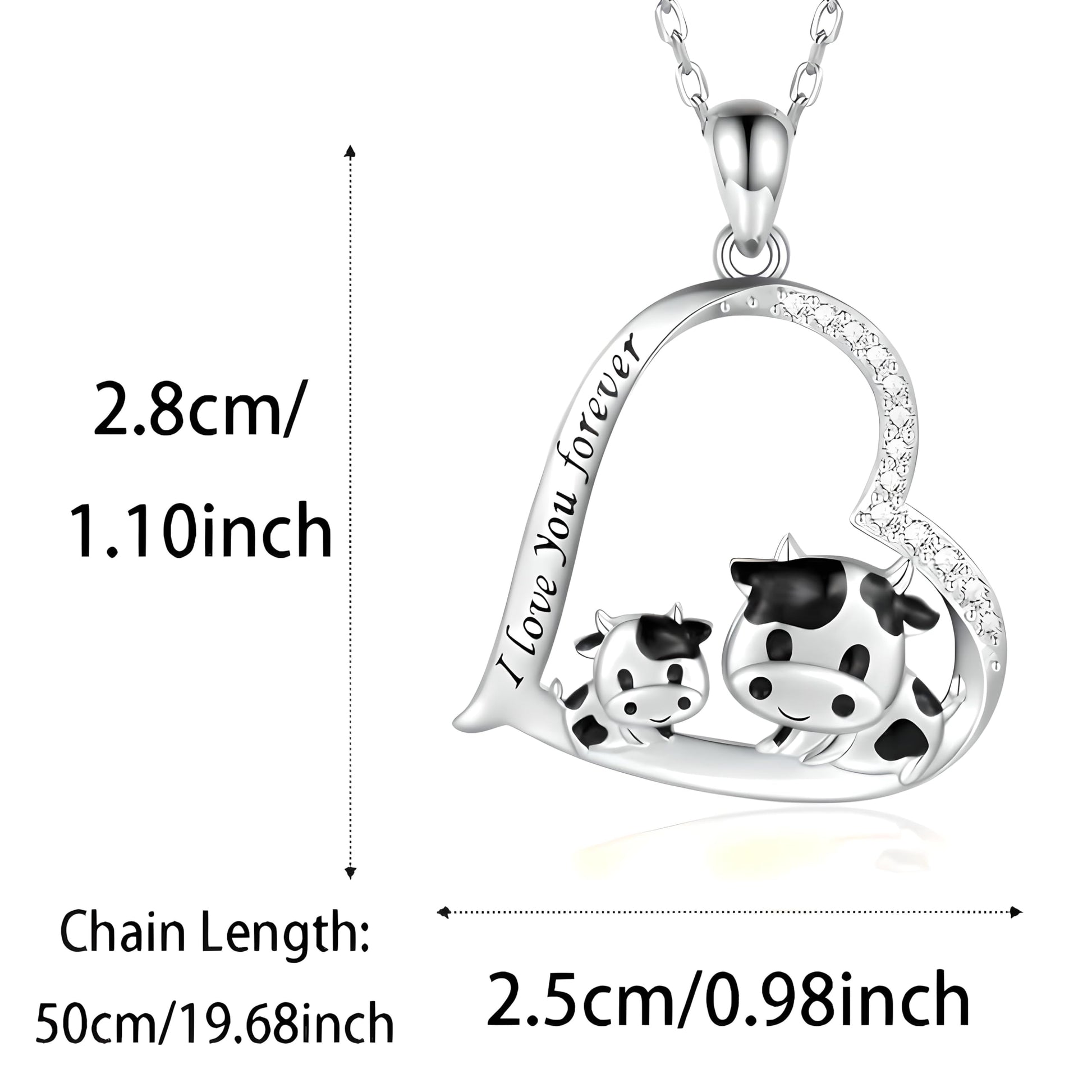 - Adorable Design: This pendant necklace features a charming heart shape with two purple cow figurines - a mother and her calf - adding a touch of whimsy and cuteness.