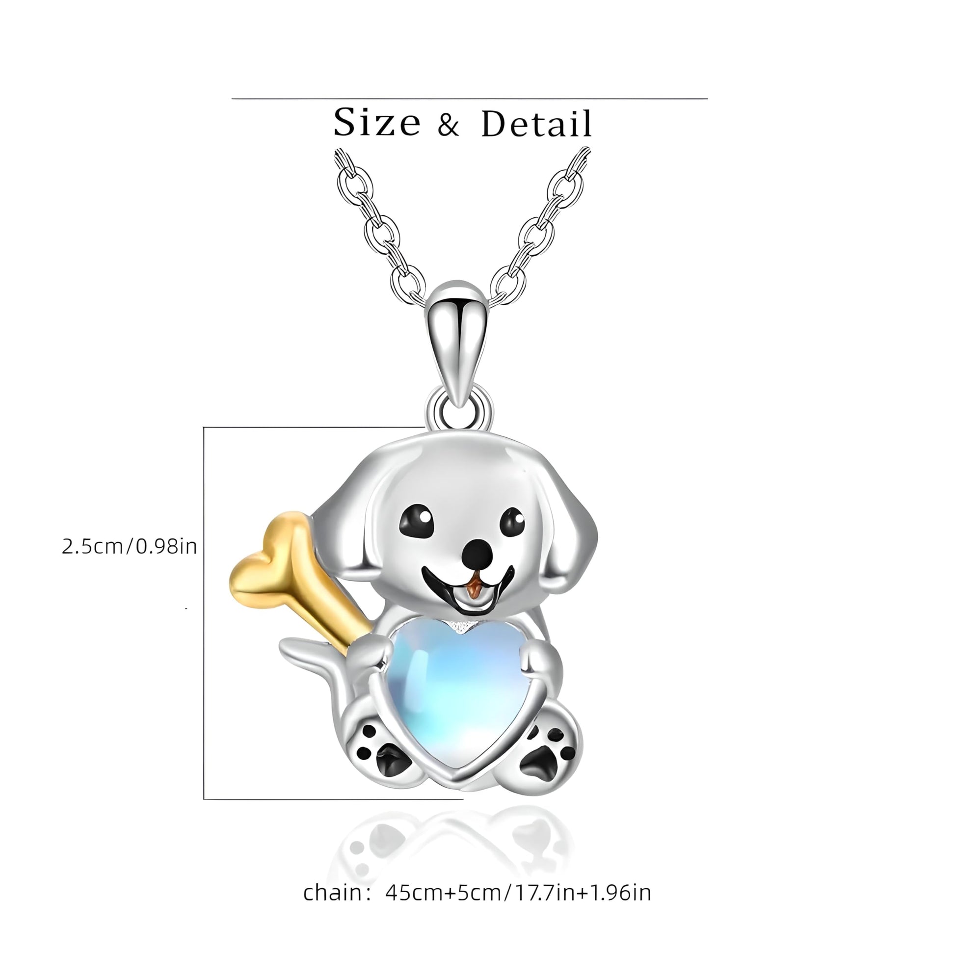 - CHARMING DESIGN: Adorable puppy pendant featuring a blue heart center and golden bone accent, crafted in sterling silver with delicate details and paw prints