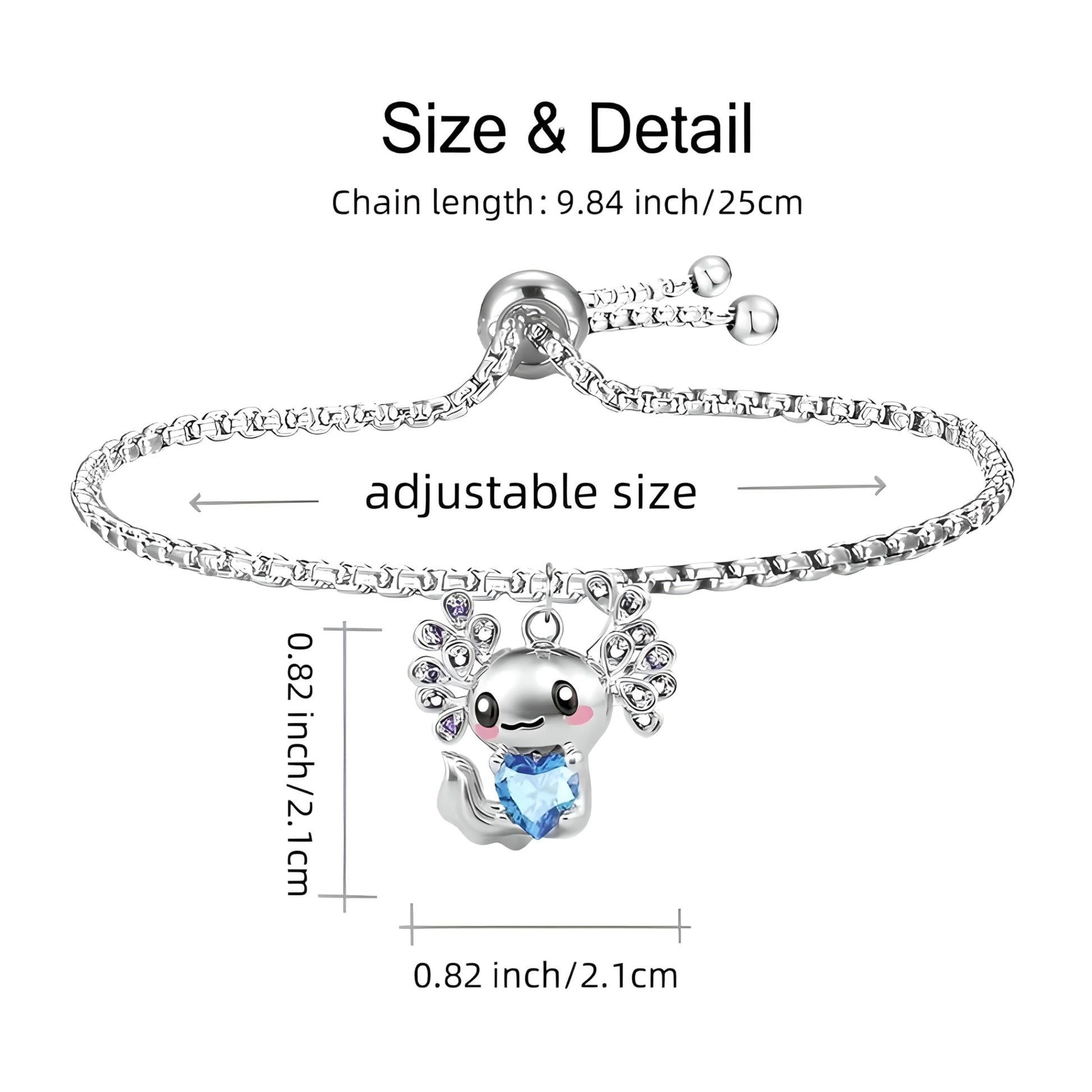- COMPLETE SET: Features a necklace with pendant, matching drop earrings, adjustable bracelet, and keychain - all featuring an adorable salamander design