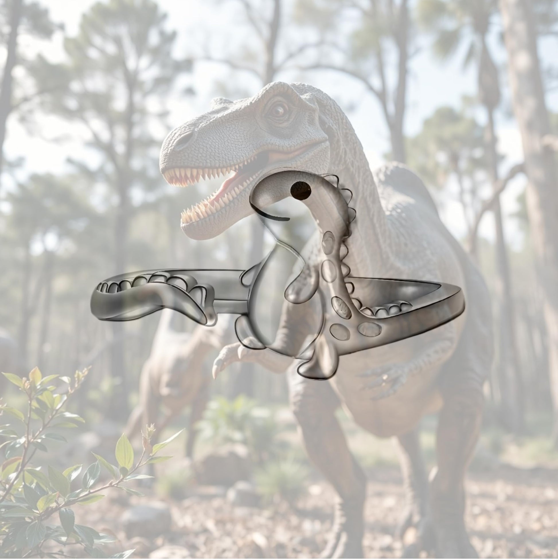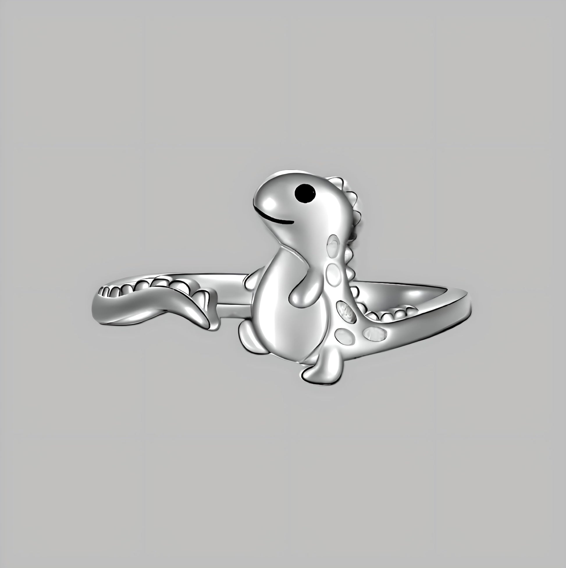 Dinosaur T-Rex Adjustable Ring, Sterling Silver, Cute Cartoon Design - Gift for Dinosaur Lovers