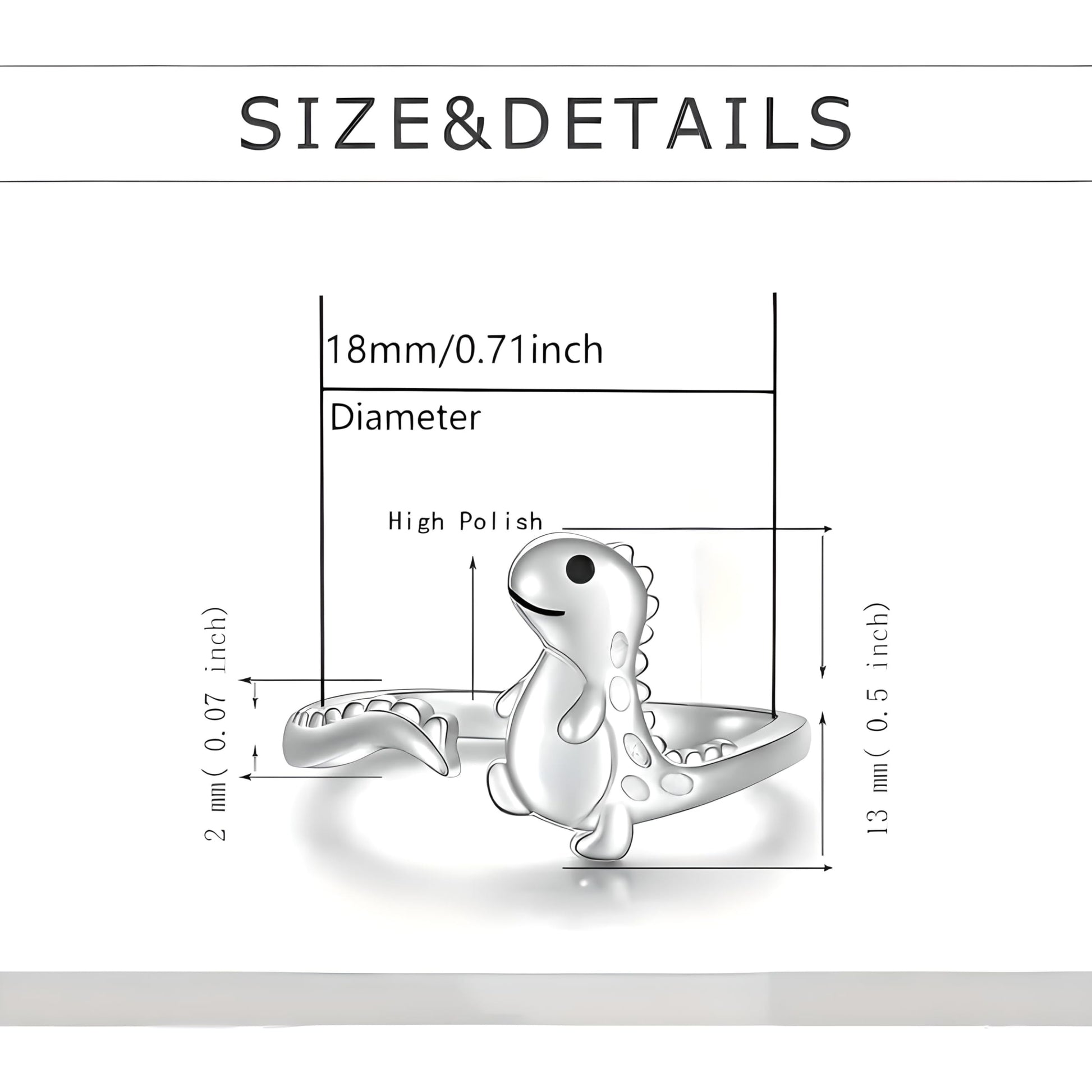 - DIMENSIONS: Dinosaur motif measures approximately 15mm in length, with delicate proportions suitable for everyday wear