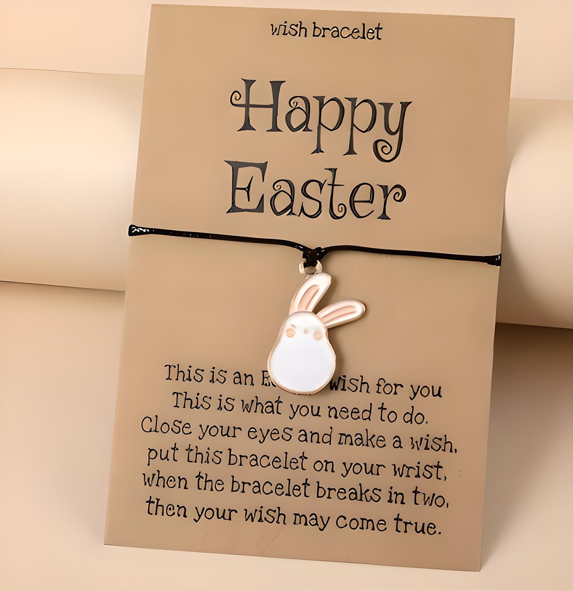 - DESIGN: Charming Easter-themed wish bracelet featuring an adorable white bunny charm pendant on a black adjustable string