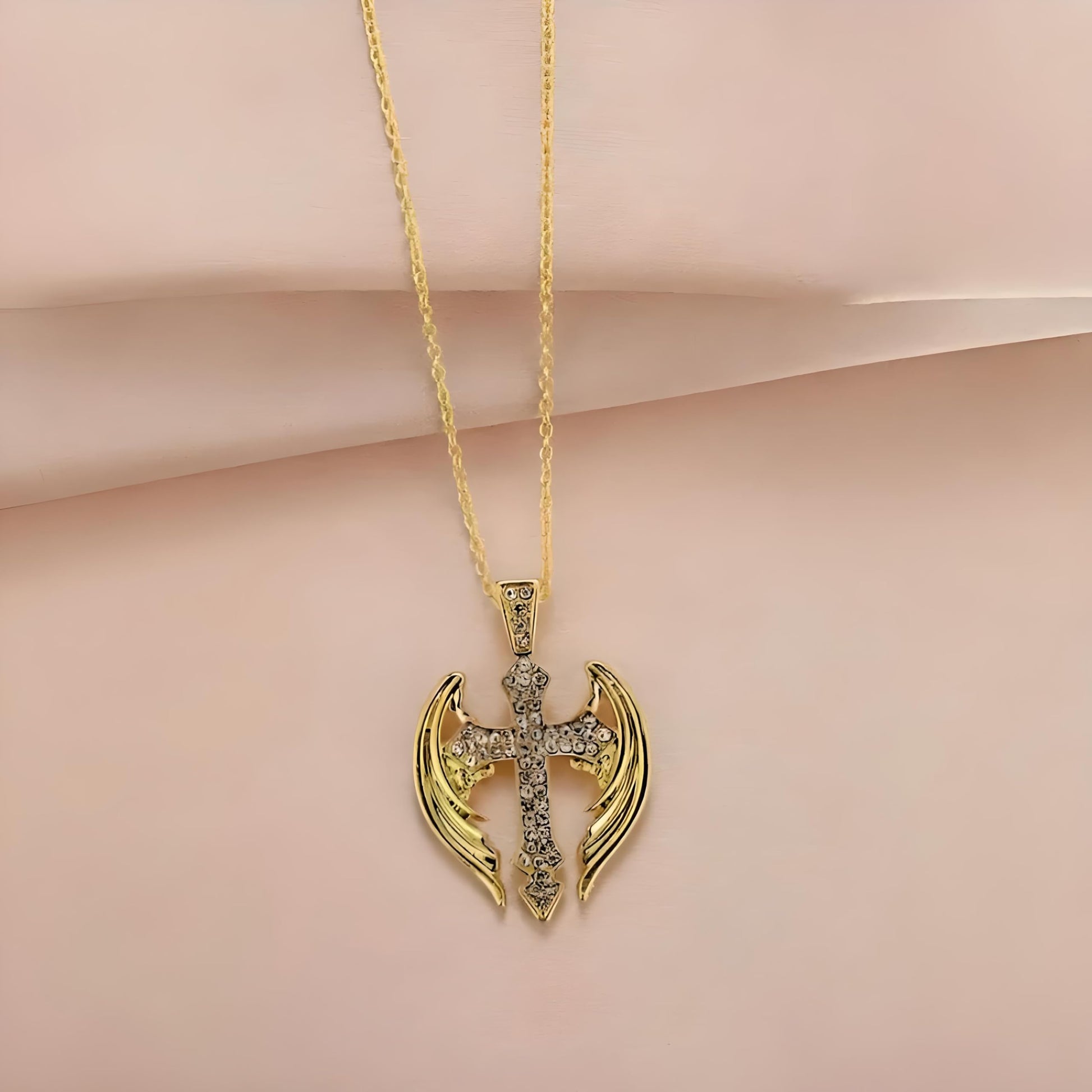 - Discover the epitome of elegance and faith with the Exquisite Golden Angel Cross Pendant Necklace for Men. This stunning piece of religious jewelry seamlessly blends sophistication with spiritual significance, making it a timeless accessory for those who wish to celebrate and showcase their faith. Ideal for Christmas, birthdays, or any special occasion, this necklace is both a meaningful symbol and a luxurious addition to any jewelry collection.