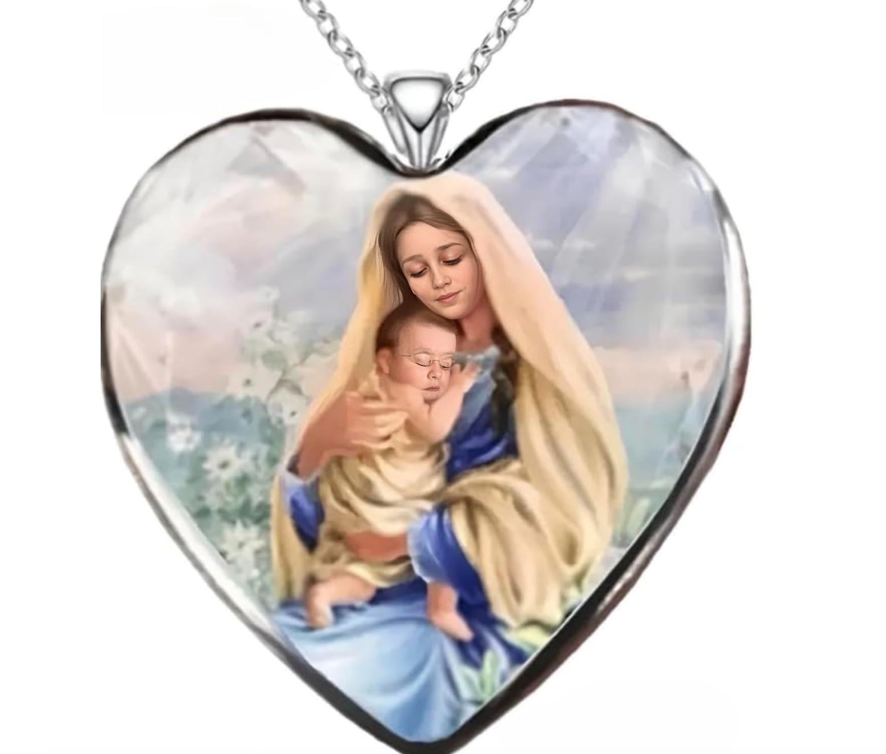 - Meaningful Keepsake: This heart-shaped glass pendant features an exquisite image of Mother Mary, capturing a cherished moment of maternal love.