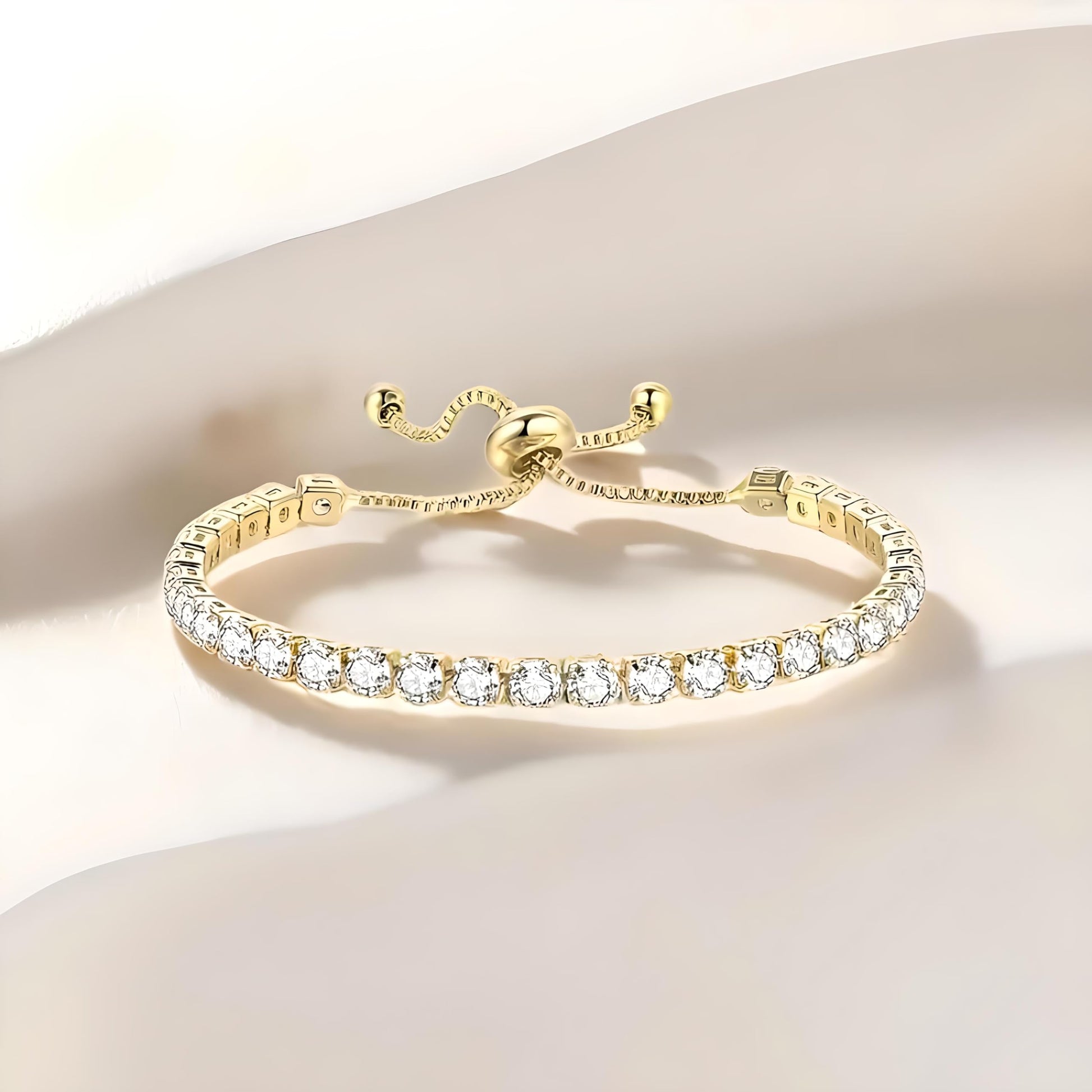 Gold Tennis Bracelet, Stretch Hand Jewelry for Women Men, Luxury Shiny (Simulated Diamond) - Christmas or Birthday Gift