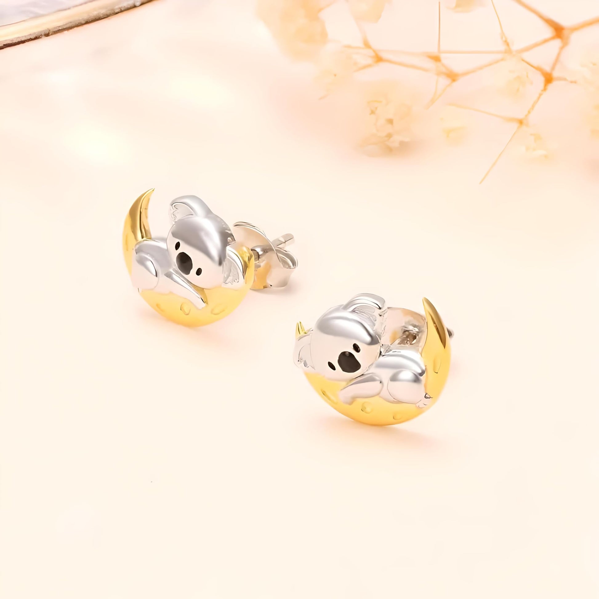 Heart-Shaped Animal Dangle Earrings, Monkey and Koala, Stainless Steel with Rhinestones, Banana Charm, Birthday or Party Gift