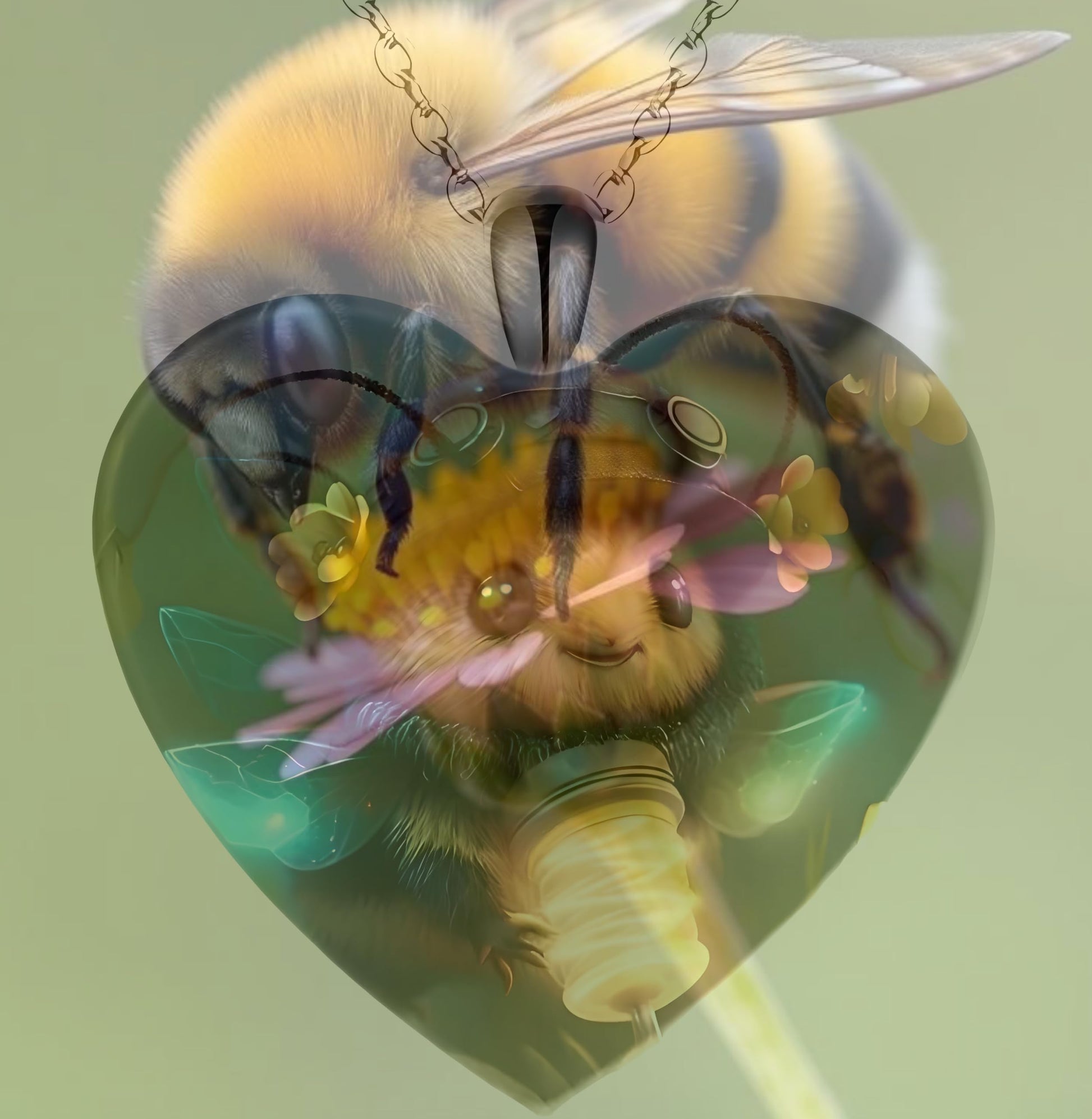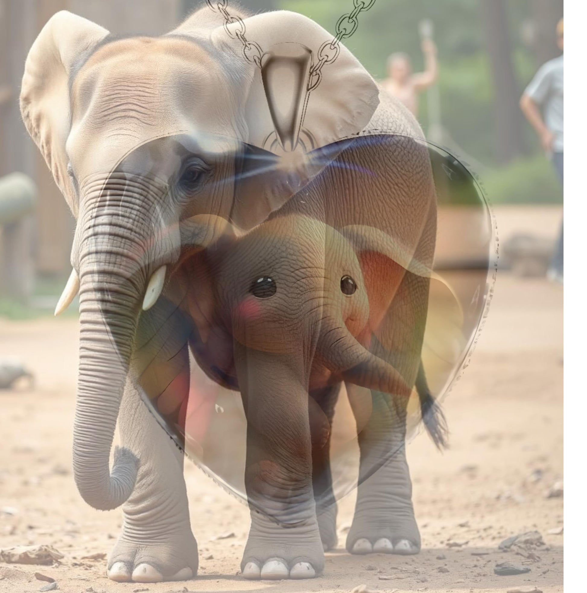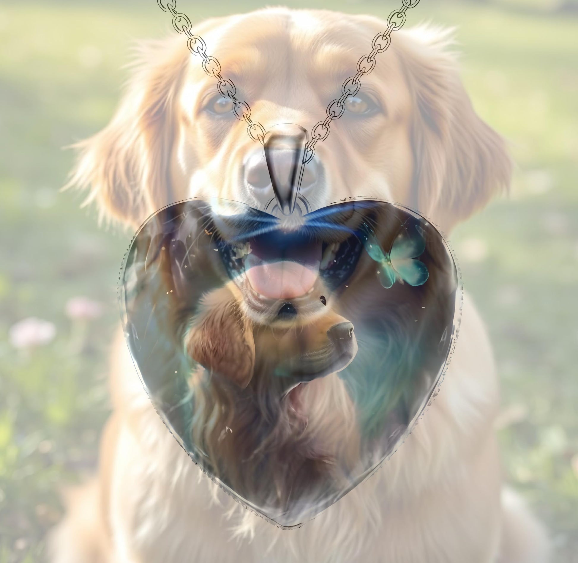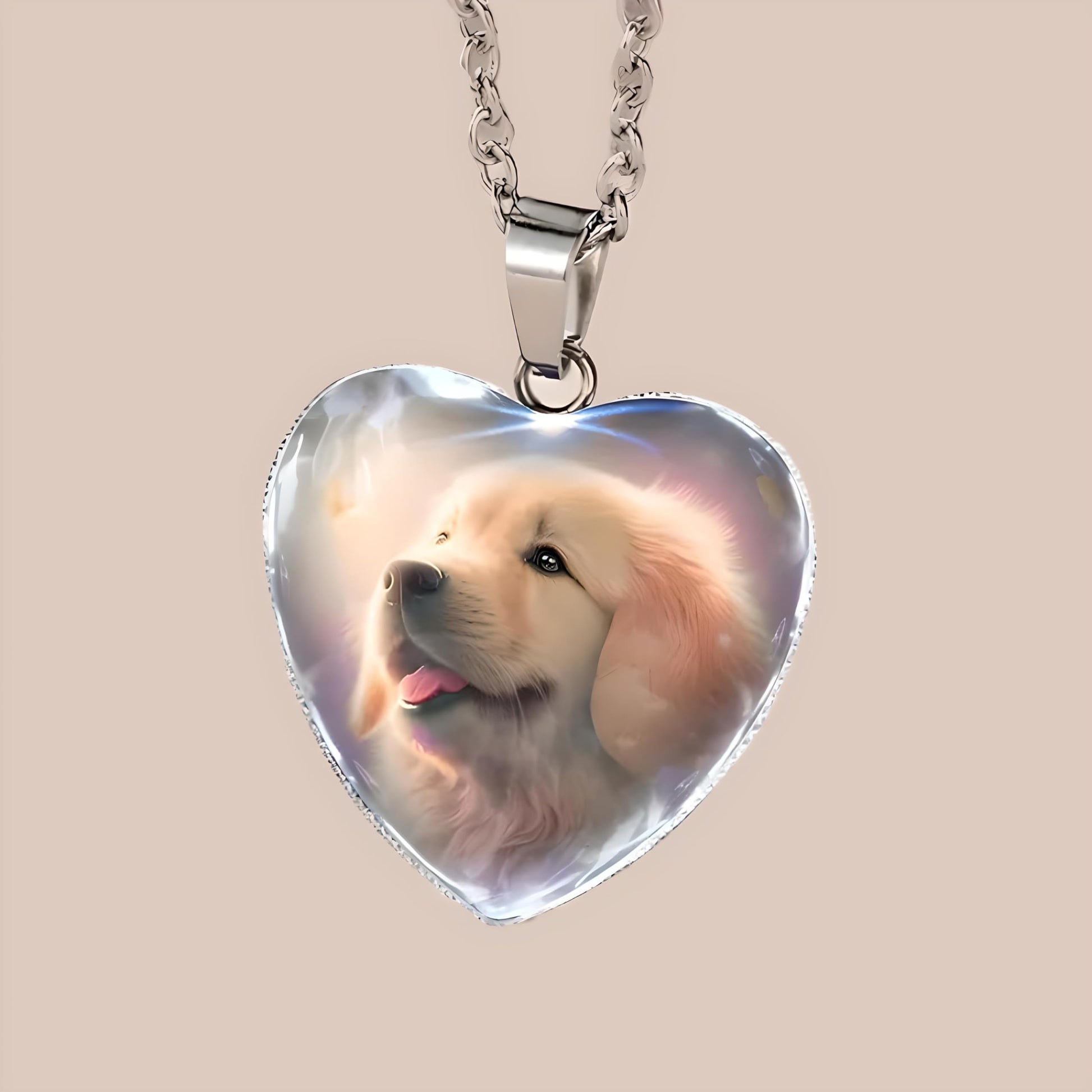 - This heart-shaped pendant features an endearing animal with a glowing heart, set against a beautiful background.