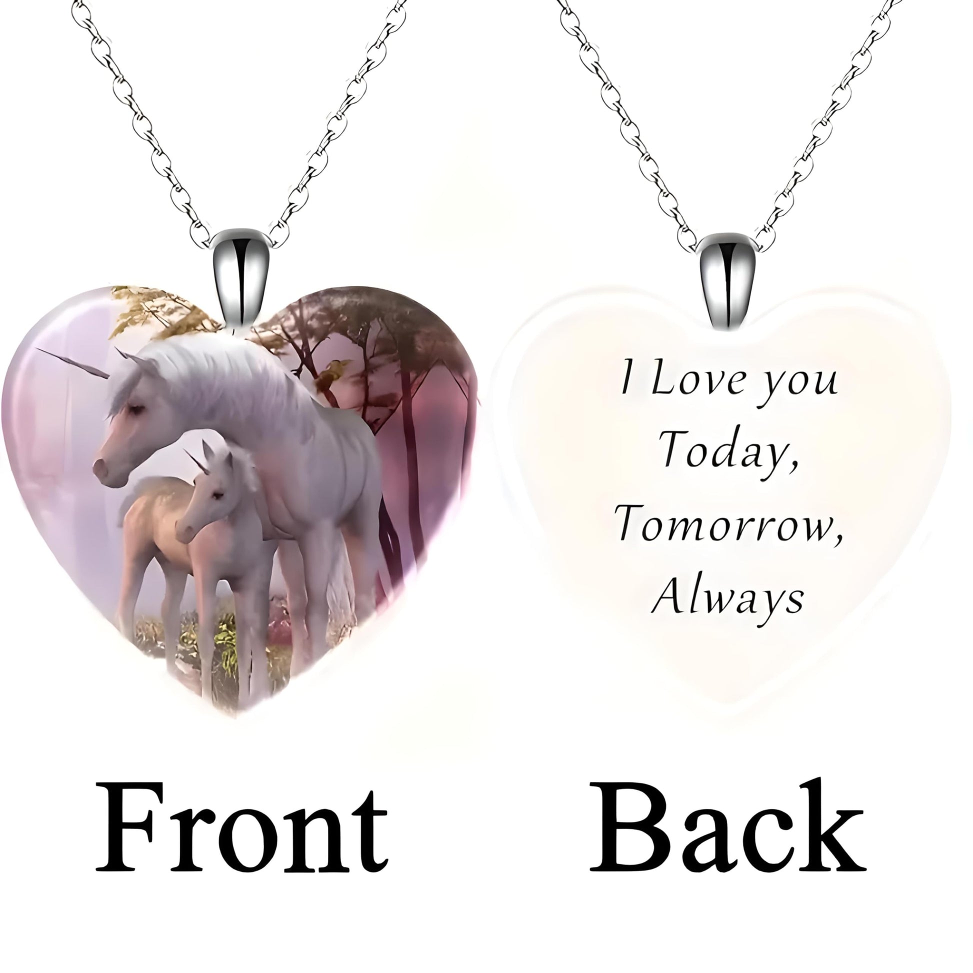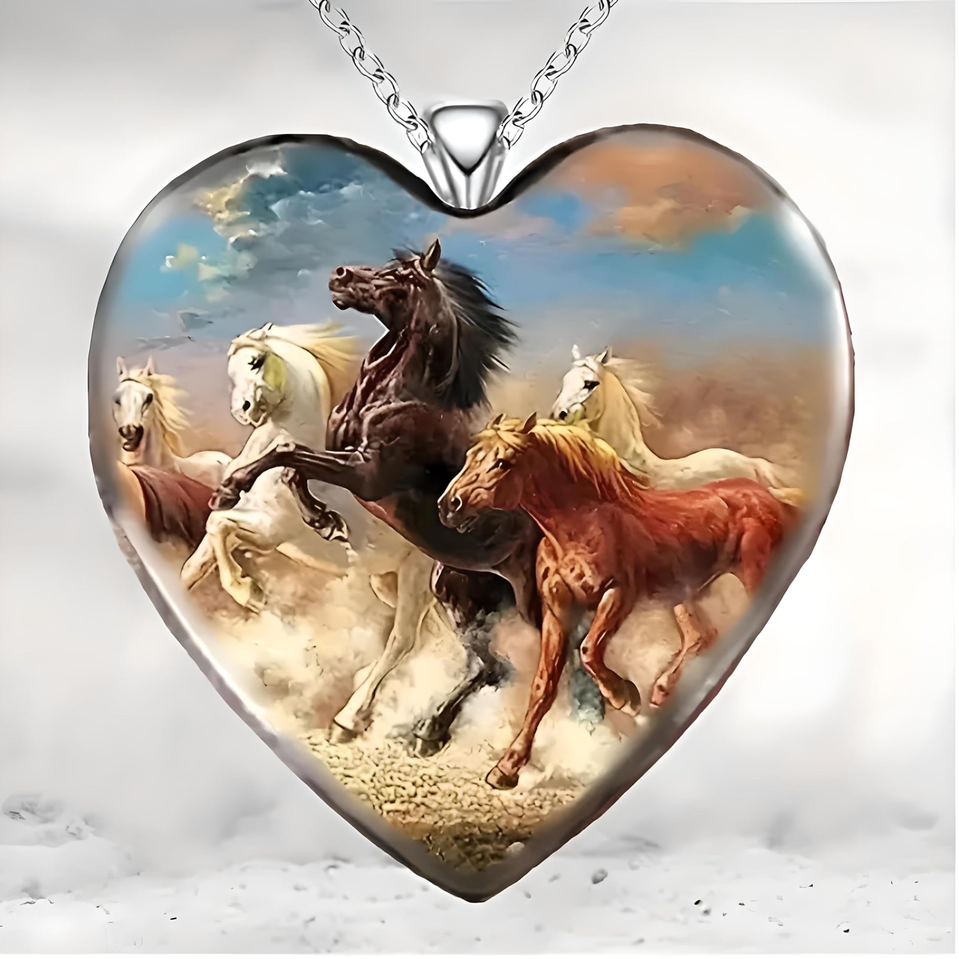 Heart-Shaped Pendant Necklace with Different Animals - Panda, Horse, Deer, Cat, Elephant, Dog Scenic Views, Stainless Steel Necklace with Glass Pendant - Christmas, Holiday, or Birthday Gift