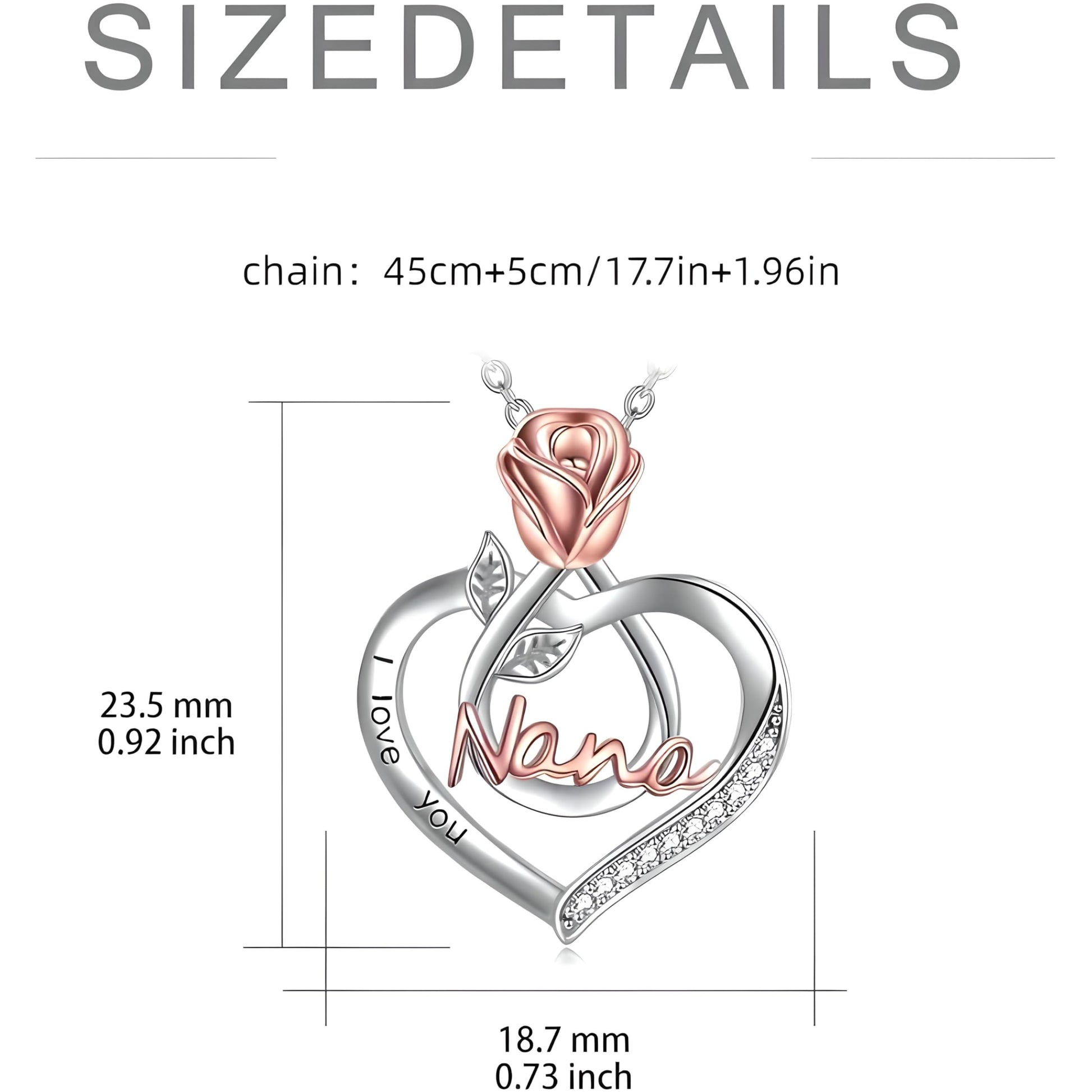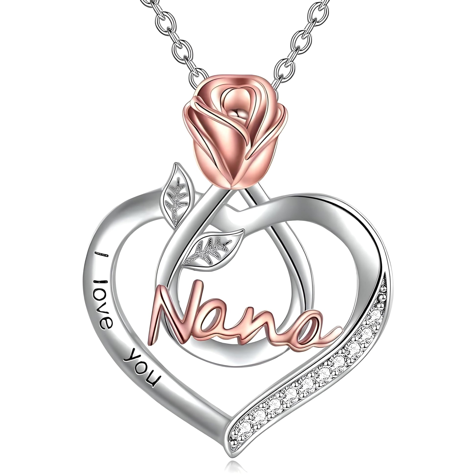 Rose Gold and Silver Heart Nana Pendant Necklace with Crystals