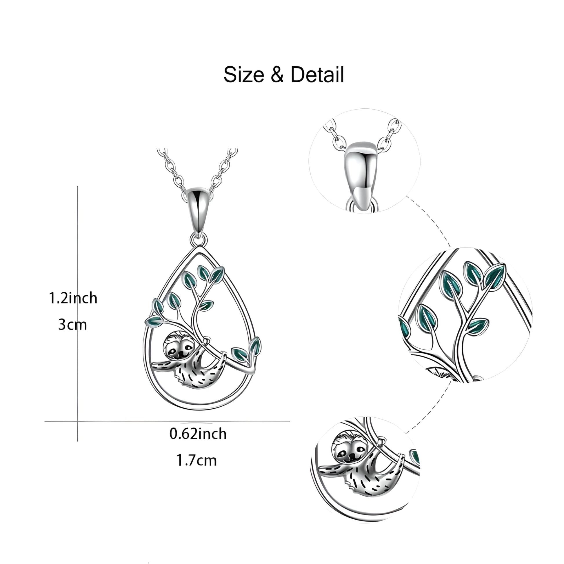 - COMPLETE SET: Sterling silver jewelry set includes a teardrop pendant necklace, matching earrings, adjustable bracelet, and keychain featuring adorable sloth designs