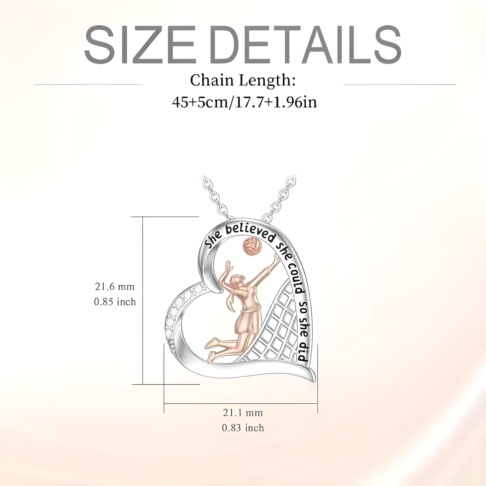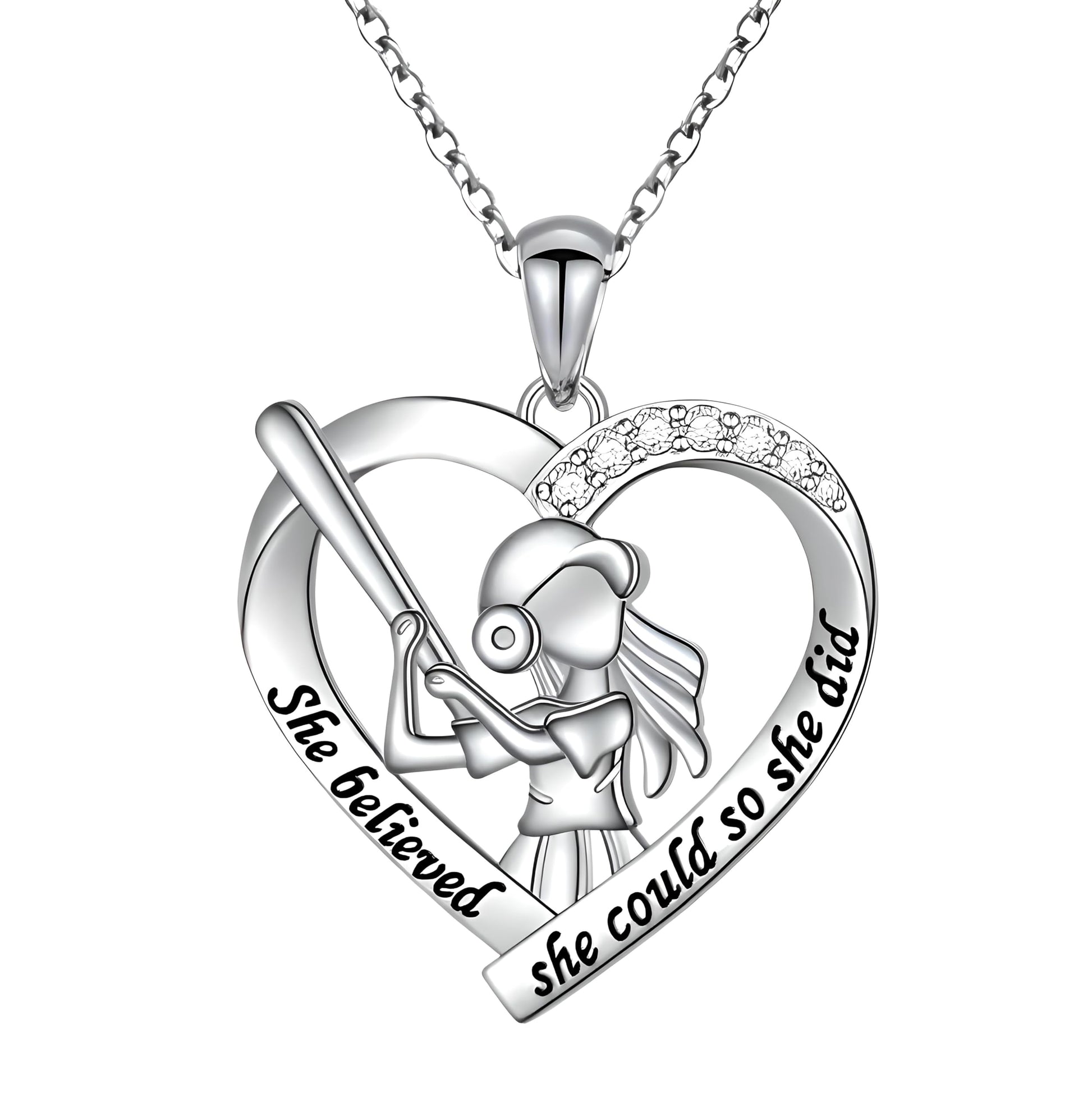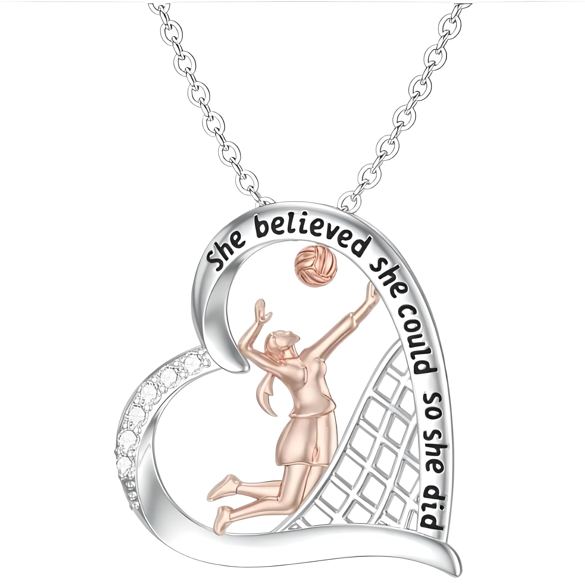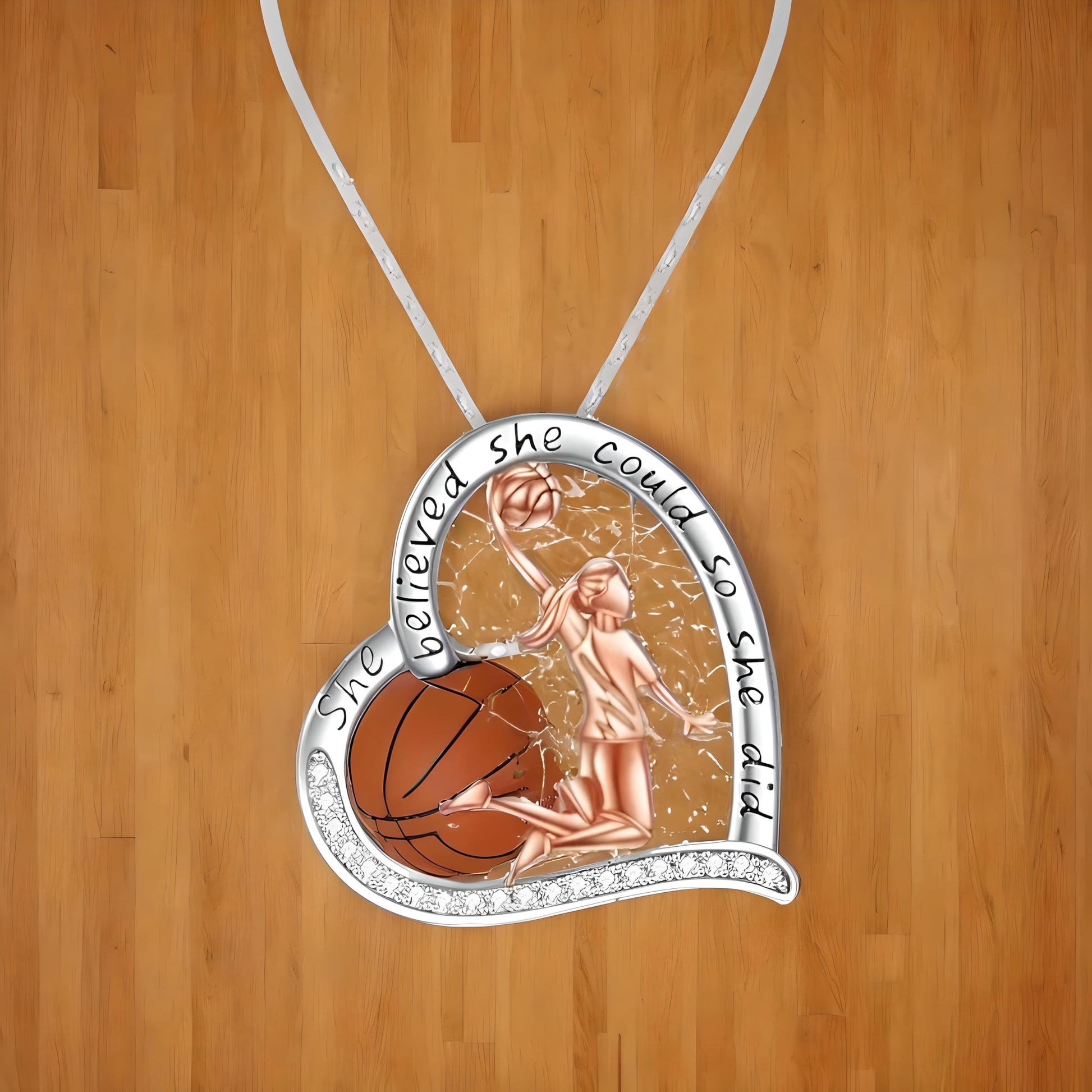 Sports Heart Necklace, 9 Different Sport Options: Basketball, Jumping Cheerleader, Gymnast, Softball, Volleyball, Ballet Ballerina, Runner, Sports Accessories Birthday Gift- Simulated Rainbow Diamonds, Christmas, Birthday or Party Gift