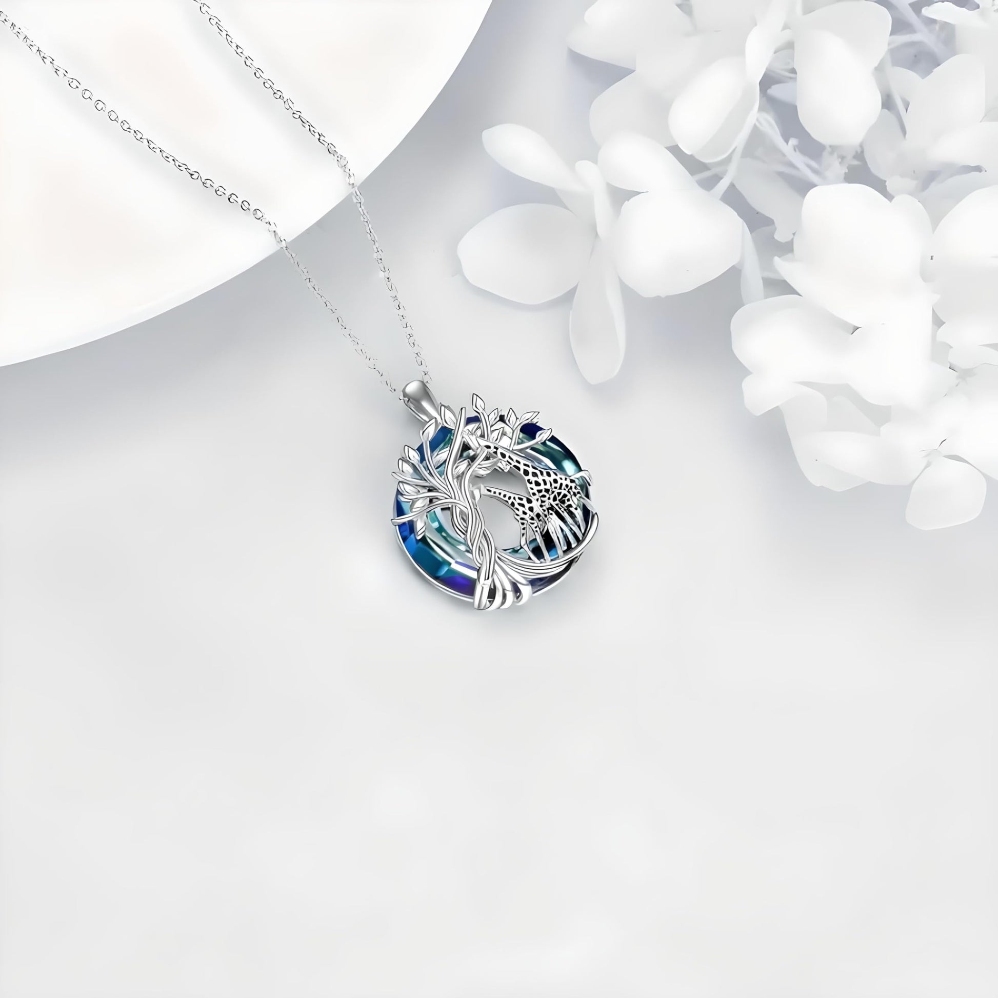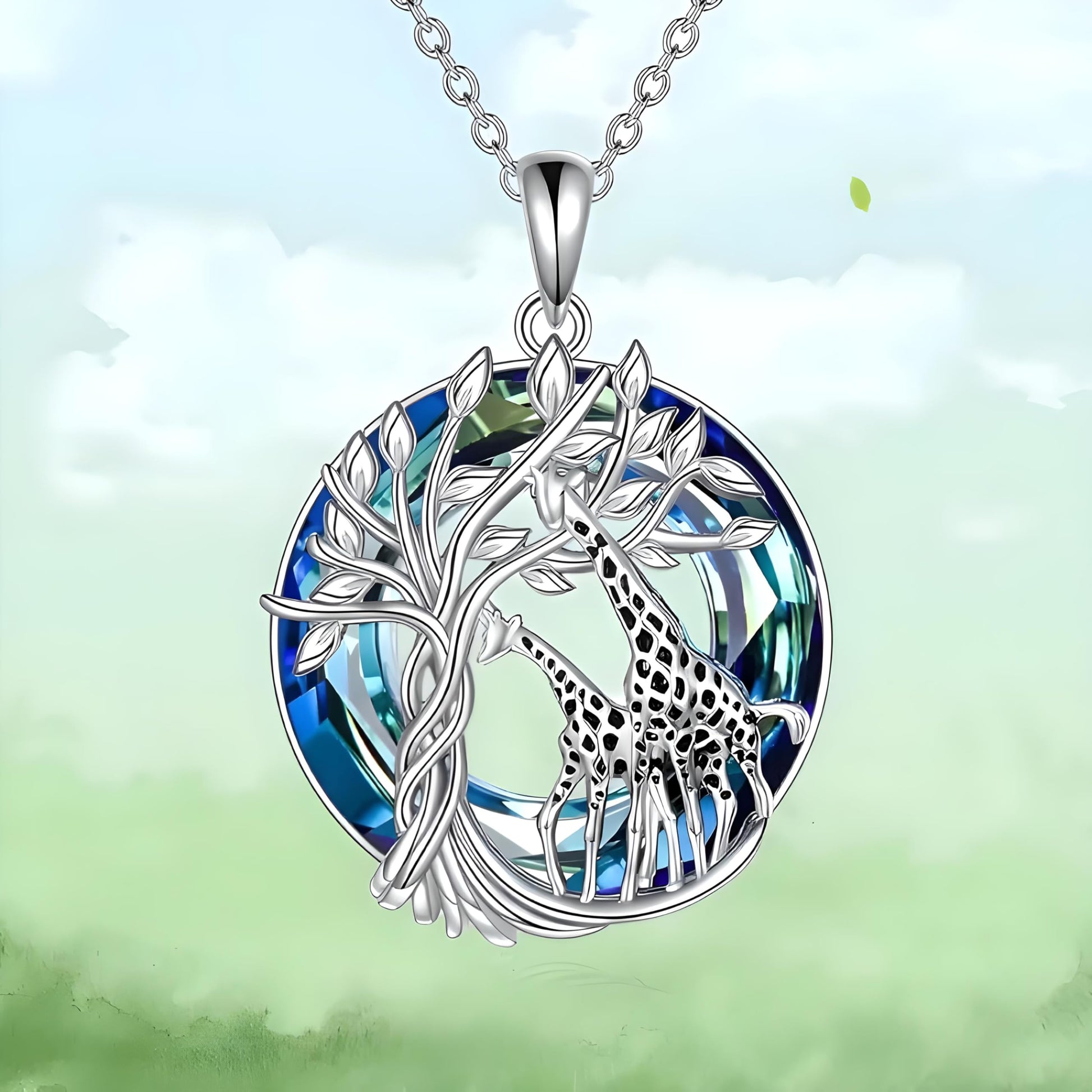 - DESIGN ELEMENTS: Beautifully crafted sterling silver pendant featuring an intricate Tree of Life motif with a detailed giraffe silhouette against a blue crystal background