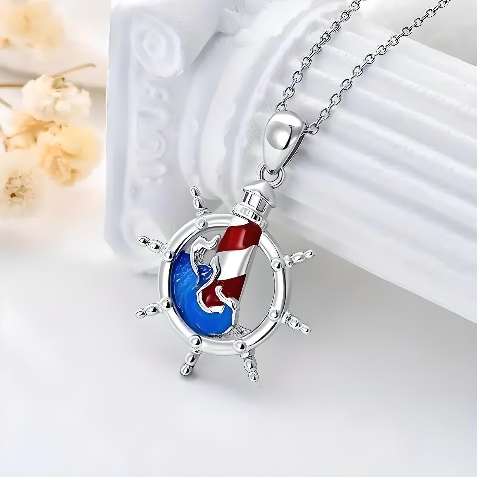 SUPAC A Nautical Life, Lighthouse and Ship Wheel Pendant Necklace, Gift for Birthday, Christmas, or Anniversaries