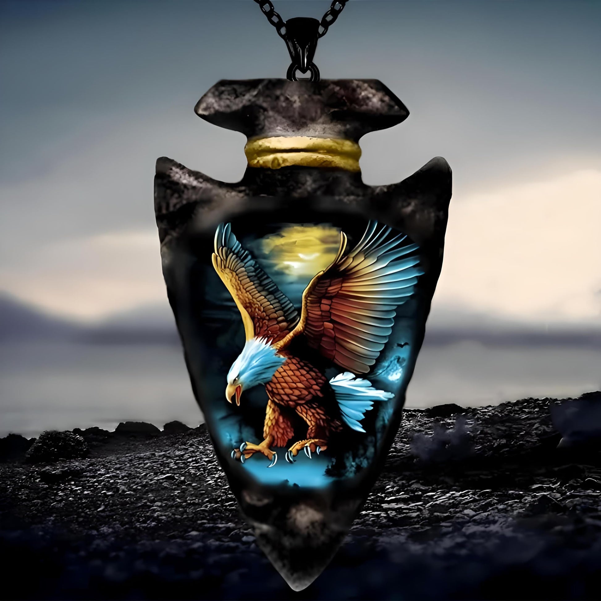- Crafted with meticulous attention to detail, the pendant features a dynamic triangle shape that frames a meticulously detailed bald eagle, a symbol of strength and freedom. The eagle’s intricate design is rendered in high-quality materials, ensuring that every feather and contour is sharp and eye-catching.