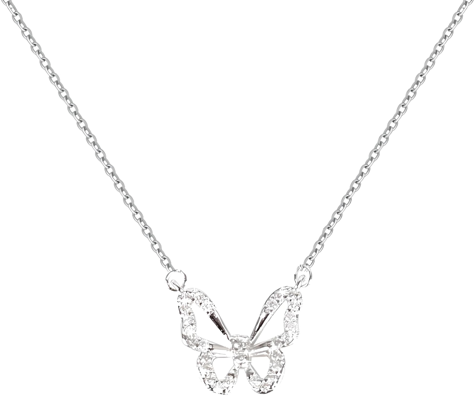 SUPAC Elegant Silver Butterfly Necklace with Delicate Rhinestone Diamonds, Neck Jewelry Ornament - Embellish Your Style, Perfect for Gifting!
