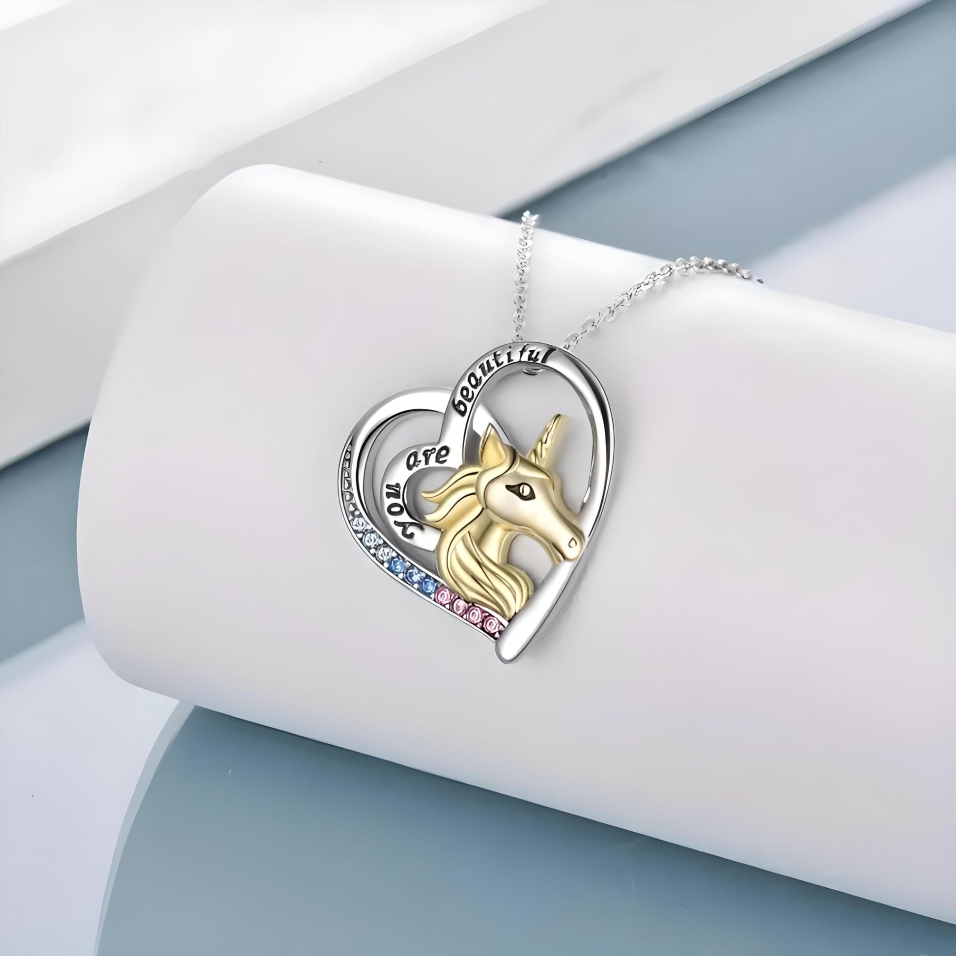 SUPAC Gold Unicorn Festive Heart-Shaped Necklace- 'you are beautiful' Charming Gift for Unicorn Lovers