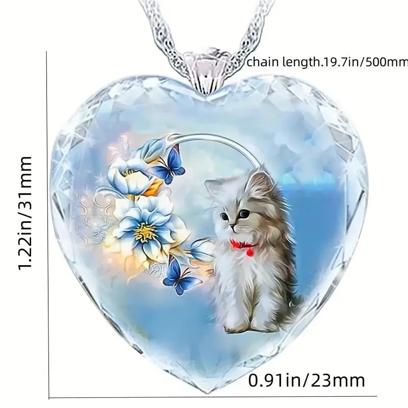 - Unique Design: Exquisite heart-shaped pendant showcasing an adorable cat illustration surrounded by vibrant flowers and butterflies.