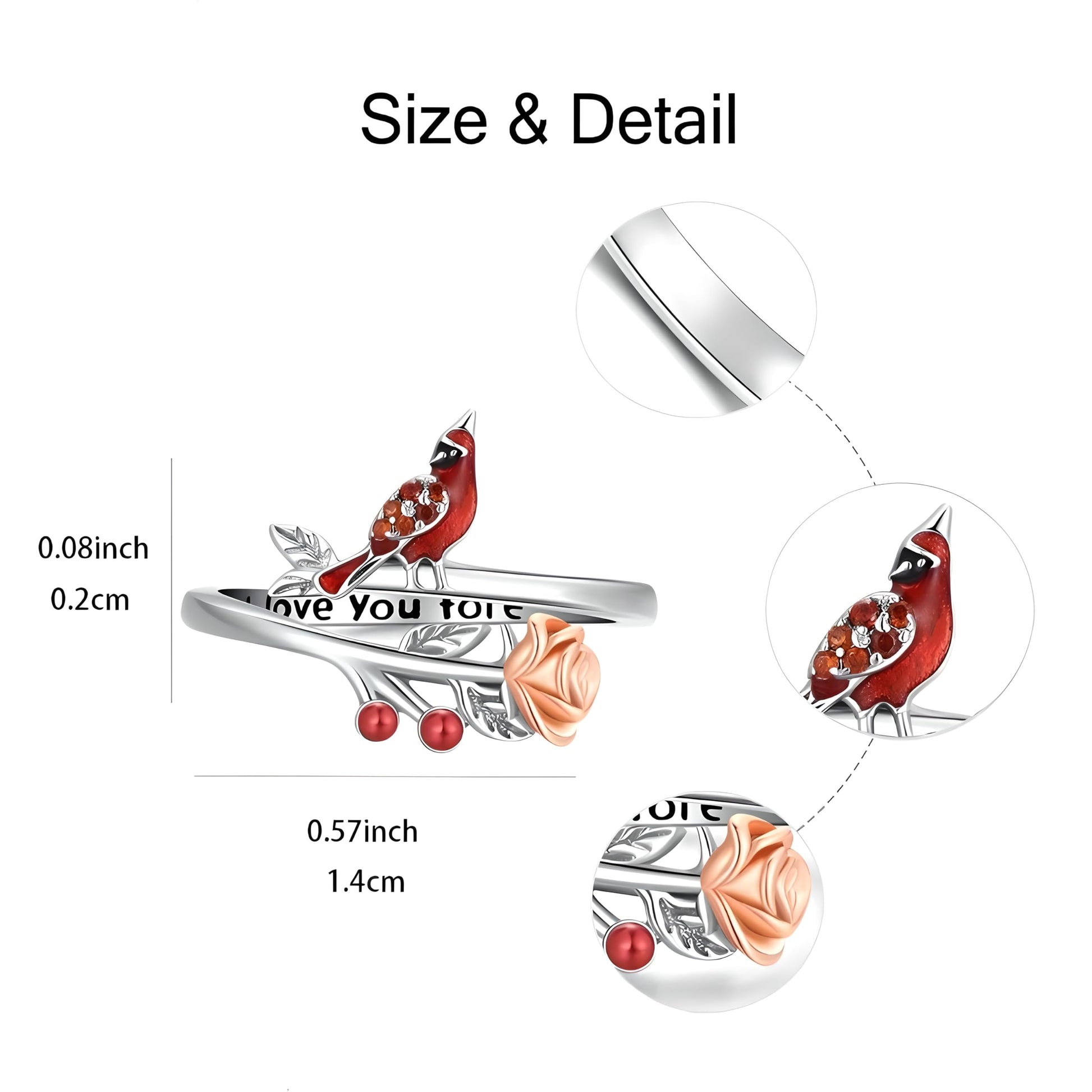 - Adjustable Ring: The adjustable ring features a delicately designed cardinal charm, allowing for a customized fit that’s comfortable and fashionable.