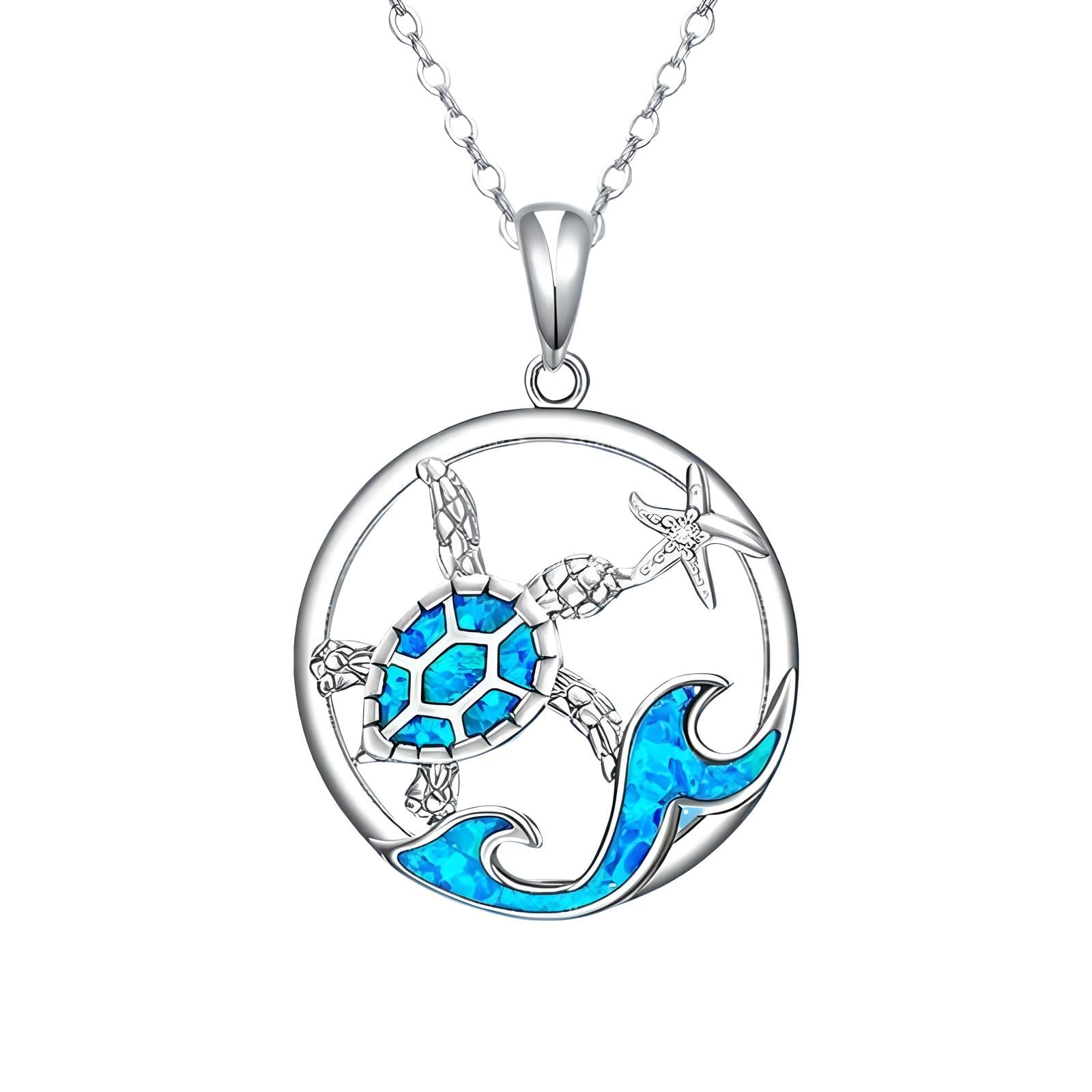 - DESIGN FEATURES: Sterling silver pendant featuring a sea turtle and wave design with stunning blue opal inlay for an ocean-inspired look