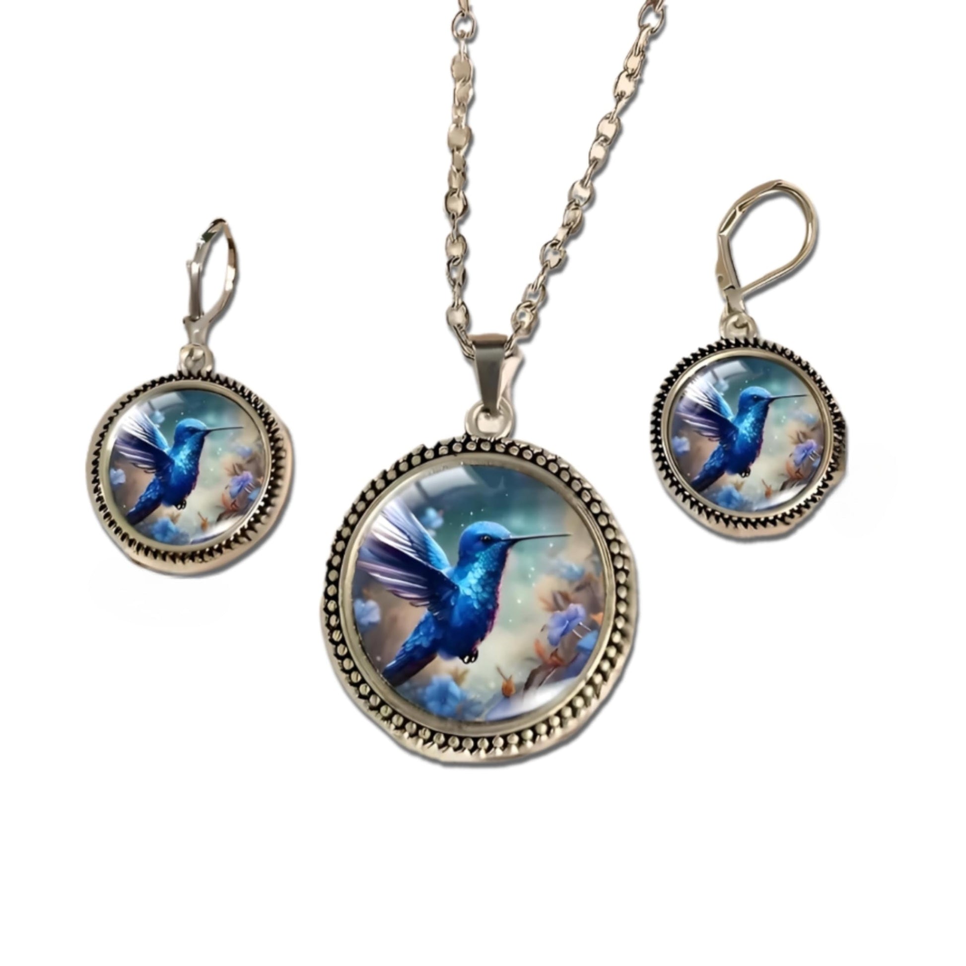 - Design and Aesthetic: At the heart of this necklace is a stunning round pendant featuring a meticulously detailed vintage hummingbird floral pattern. The enchanting design showcases a hummingbird in mid-flight, surrounded by delicate blossoms and foliage. This captivating imagery evokes a sense of grace and freedom, making it a perfect accessory for any occasion. The retro-inspired pattern adds a nostalgic touch, while the modern fashion-forward elements ensure that it remains a chic and stylish