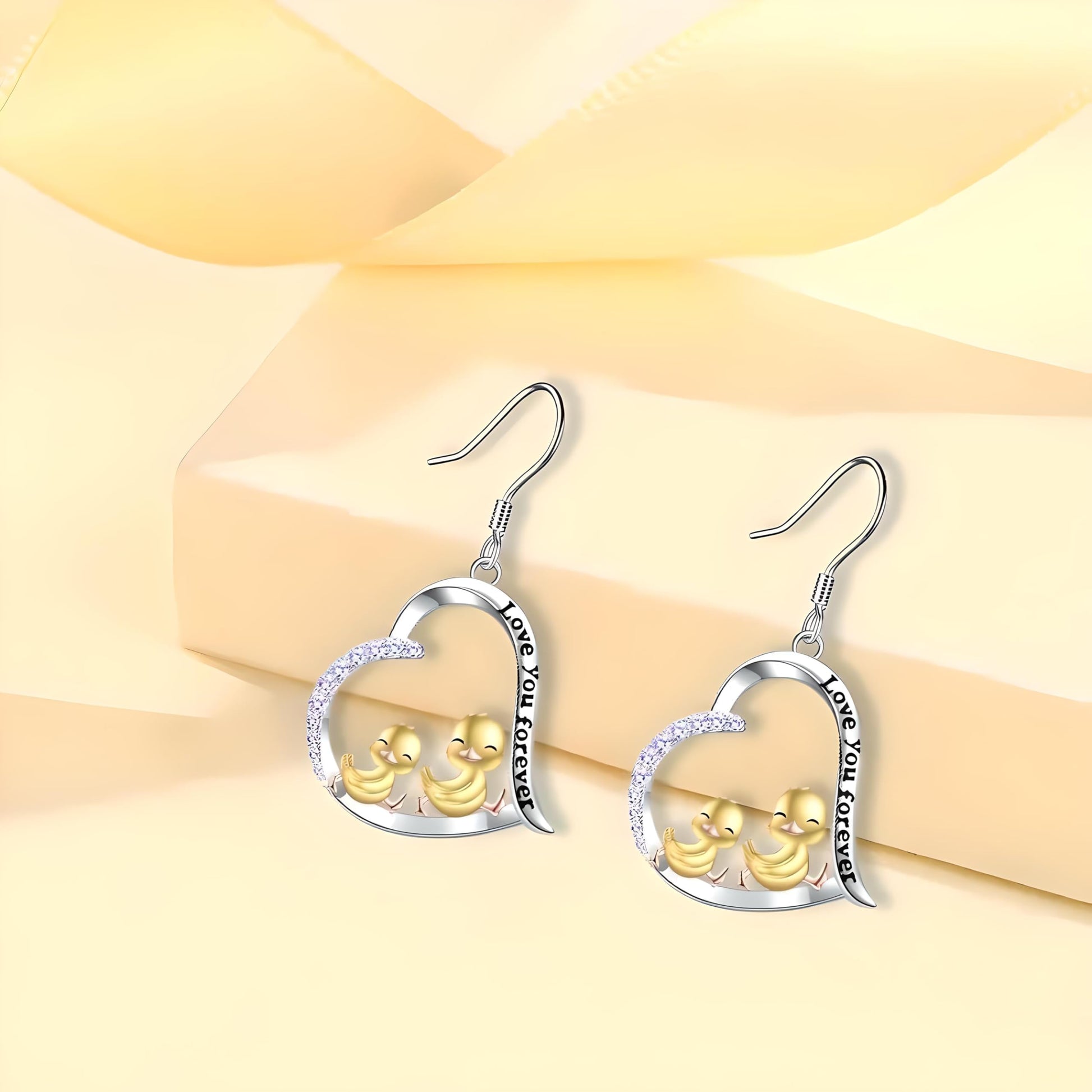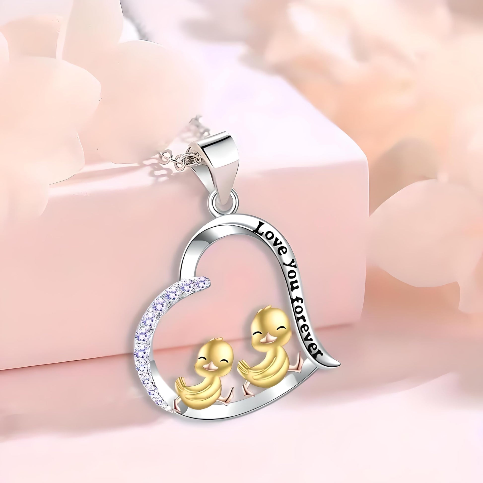 SUPAC Unique Heart-Shaped Duckling Pendant Necklace - Get Your Ducks in a Row! Forever in my heart -Exquisite Rhinestones, Plated White K Alloy, Fashionable Birthday Graduation Gift for Her