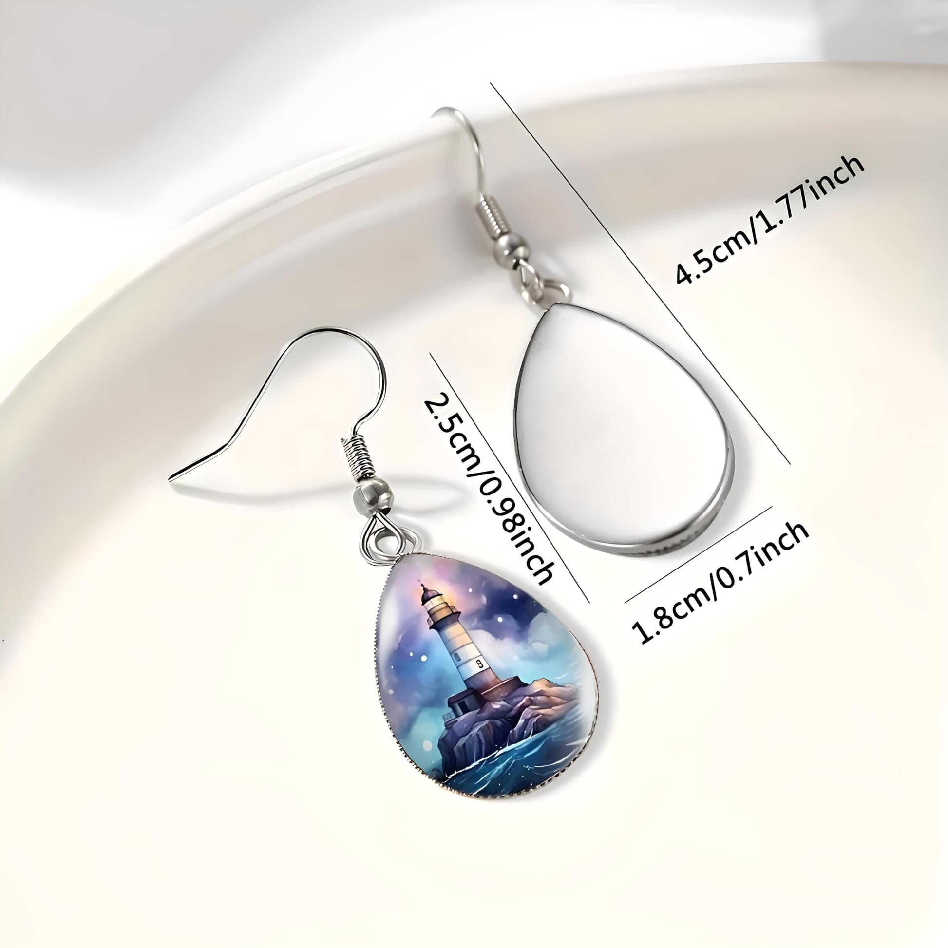 - DESIGN FEATURES: Beautiful teardrop-shaped dangle earrings featuring a dreamy lighthouse scene with starlit sky and ocean waves in vibrant blues and purples