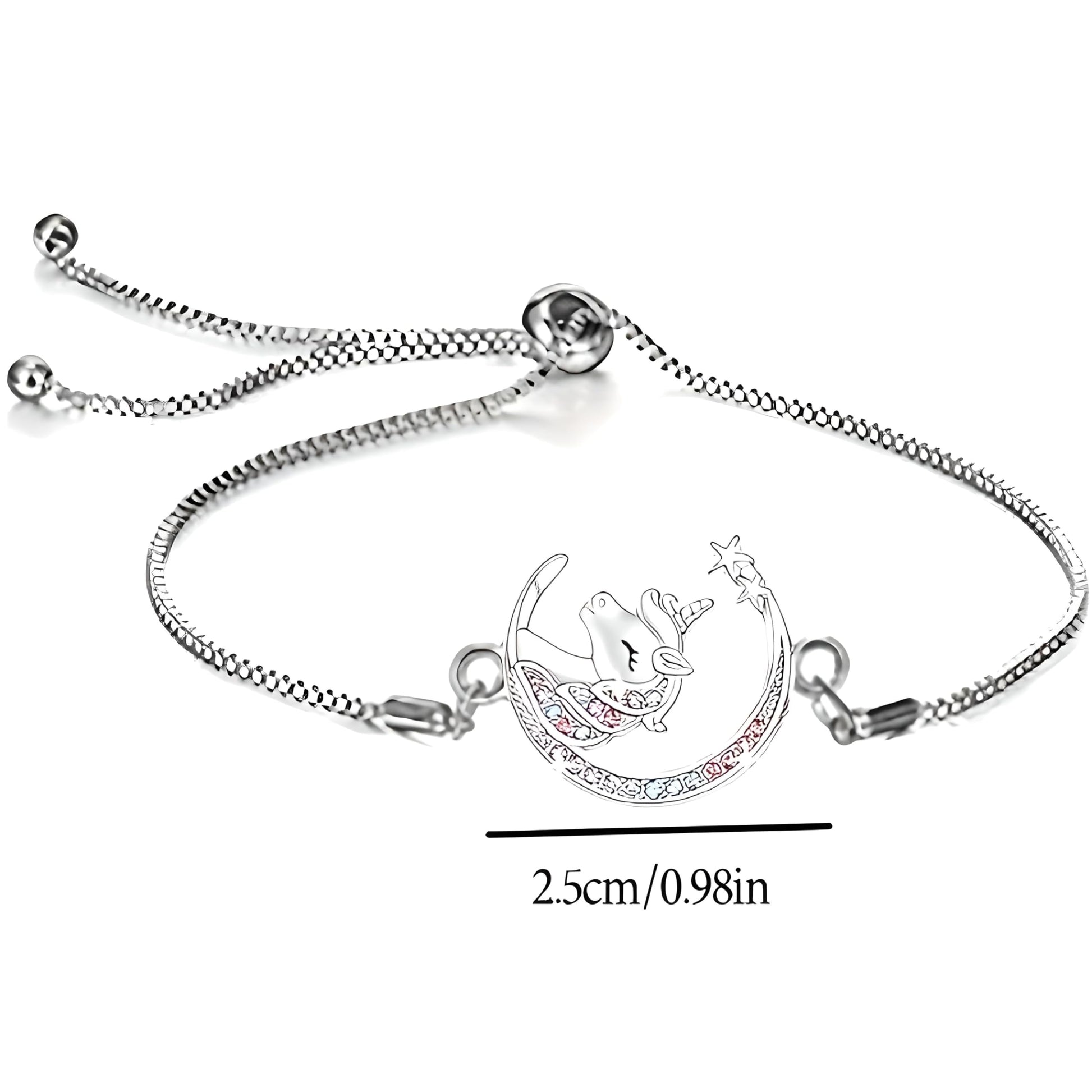 - DESIGN ELEMENTS: Silver-toned metal featuring magical unicorn motifs combined with crescent moon and star details for an enchanting look