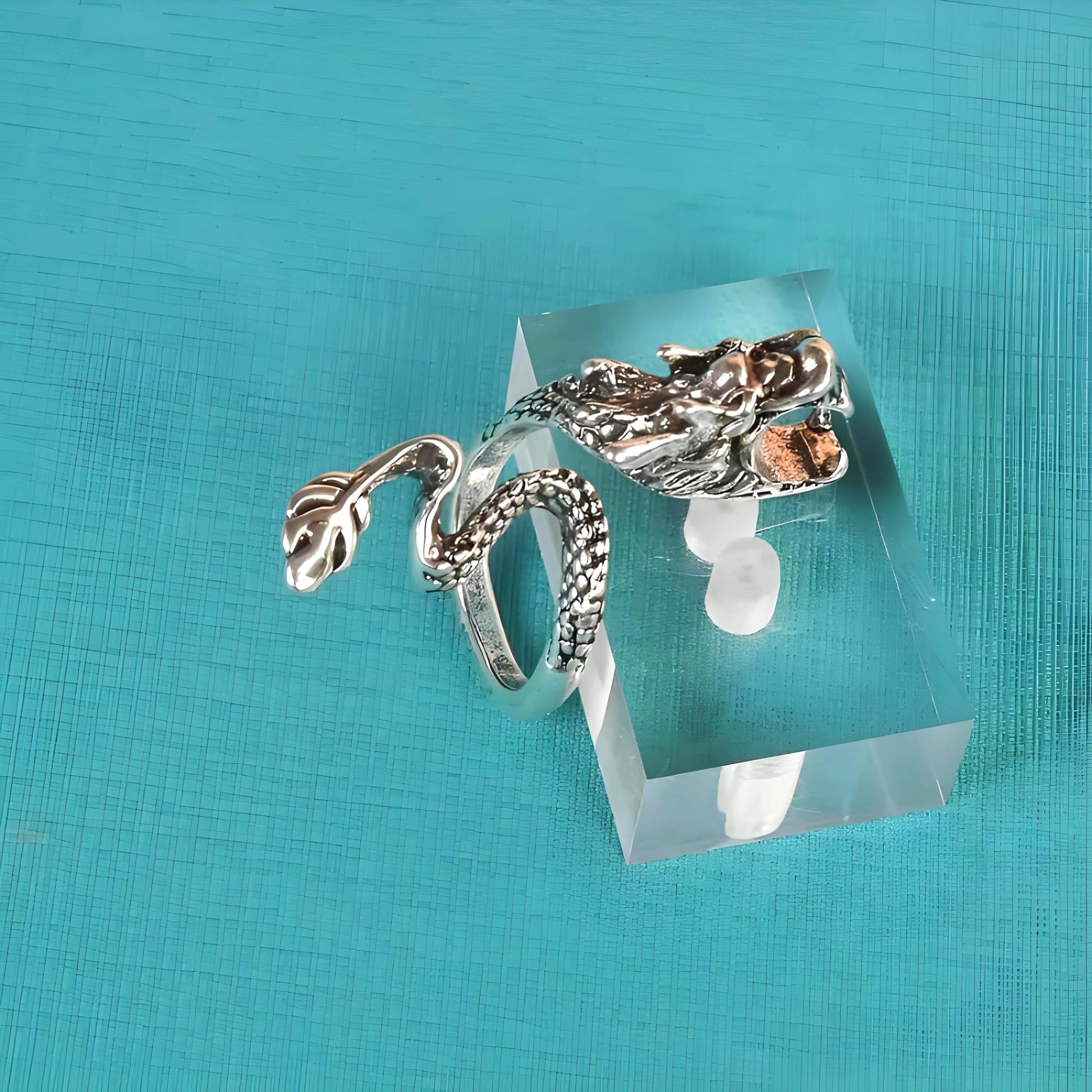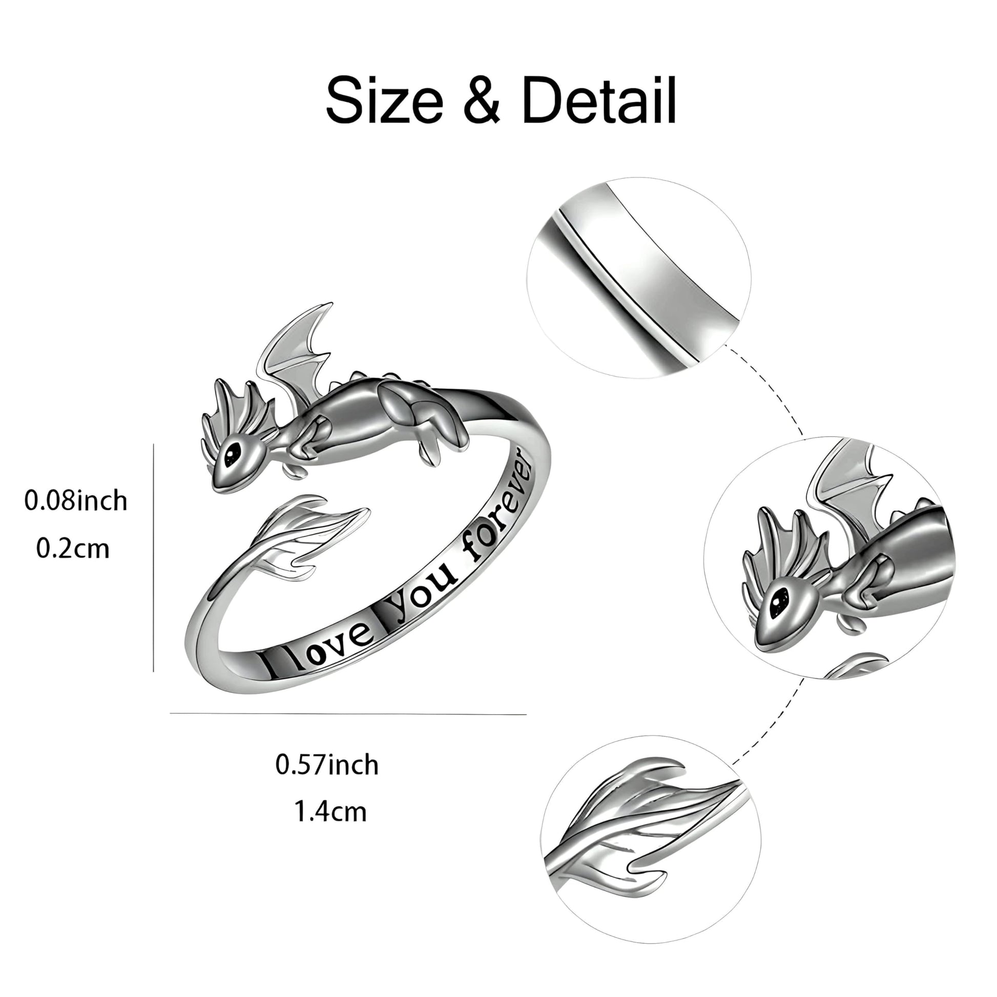 Whimsical Silver Flying Dragon Ring - Unique Animal Shape Design, Adjustable Index Finger Ring for Men or Women, Cute Personality Statement Jewelry, Niche Fashion Accessory