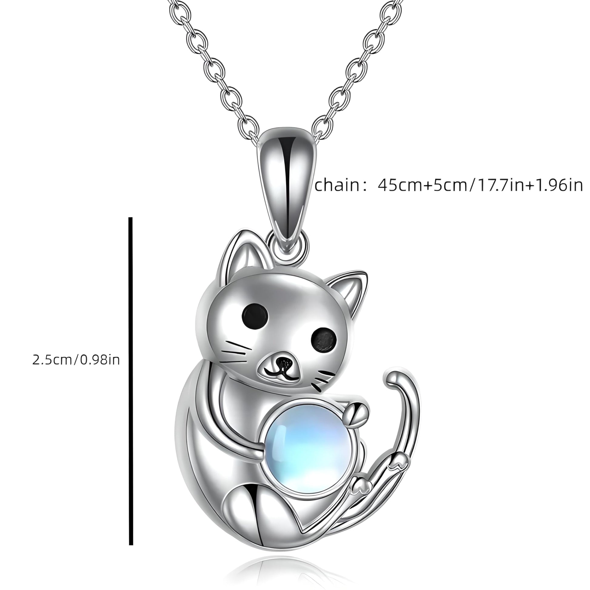 - MOONSTONE ACCENT: Beautiful blue moonstone ball charm adds a mystical touch to the playful cat design