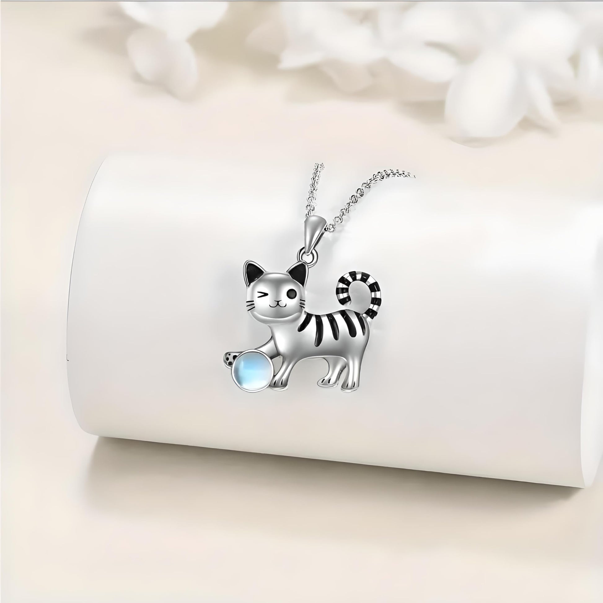 - MOONSTONE ACCENT: Beautiful blue moonstone ball charm adds a mystical touch to the playful cat design